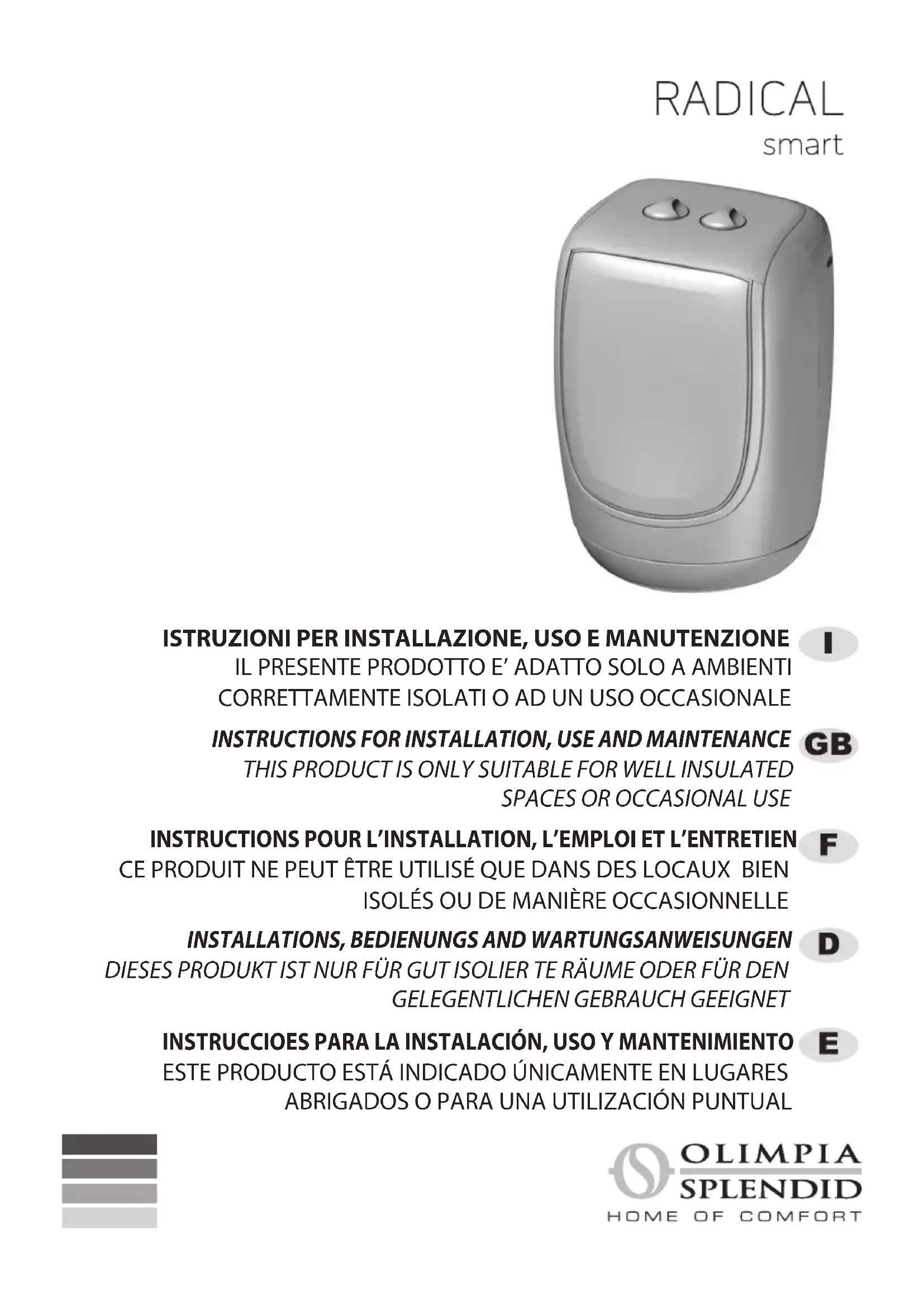 Retrouvez gratuitement la notice de l'appareil Radical smart OLIMPIA SPLENDID au format PDF.