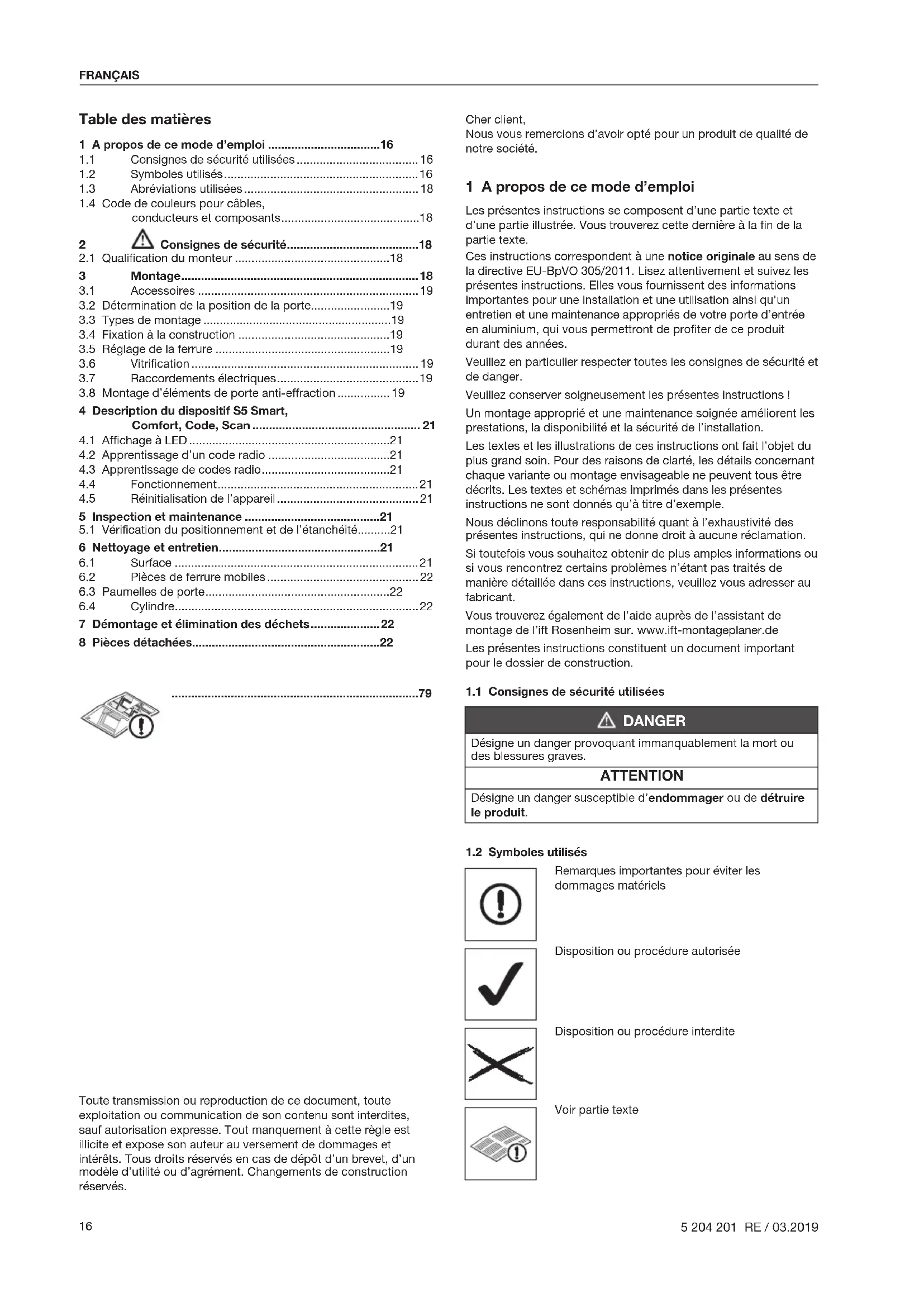 1.2 Symboles utilisés ........................................................... 16