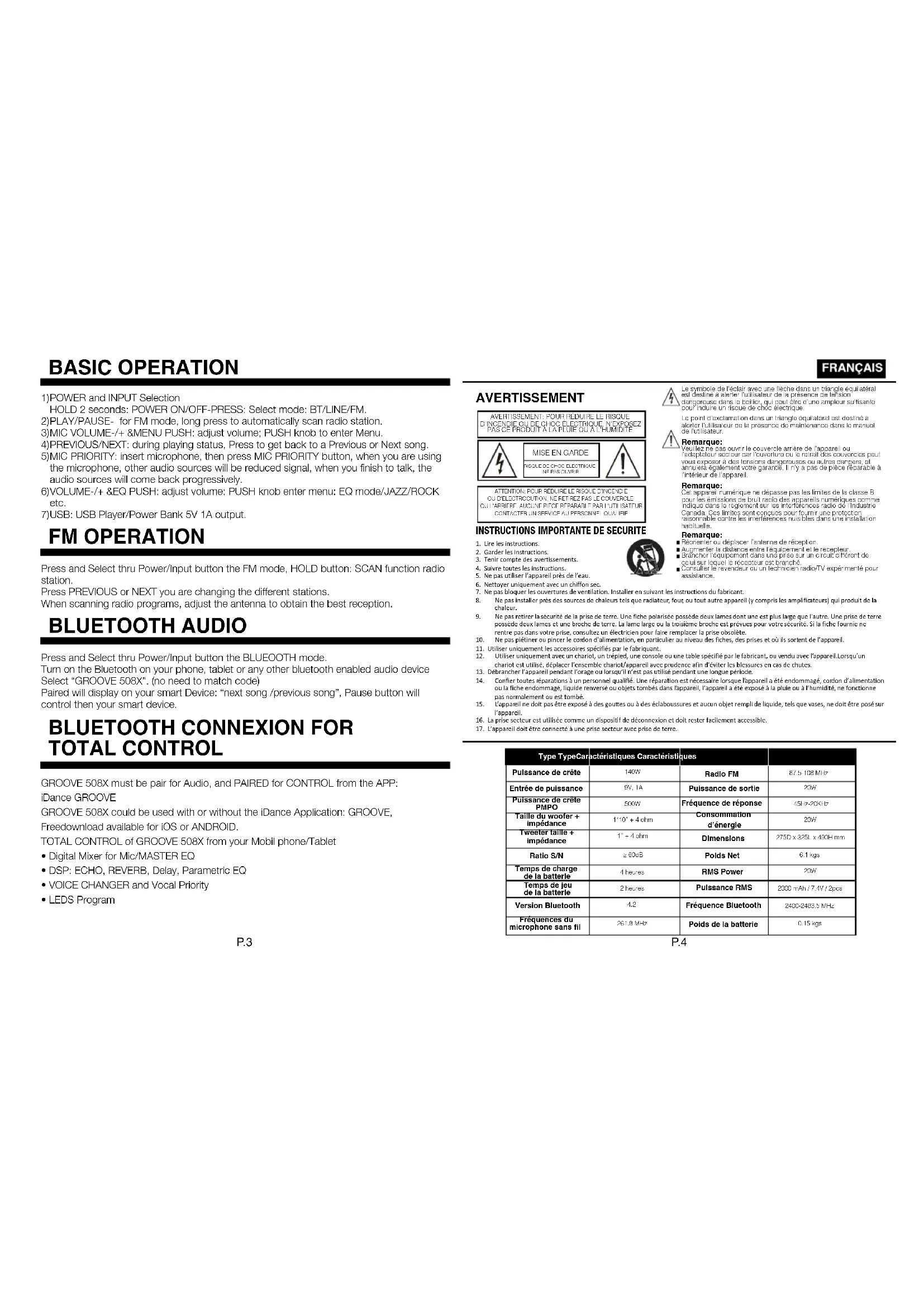 Groove 508x - Haut-parleur iDance - Notice d'utilisation et mode d'emploi gratuit
