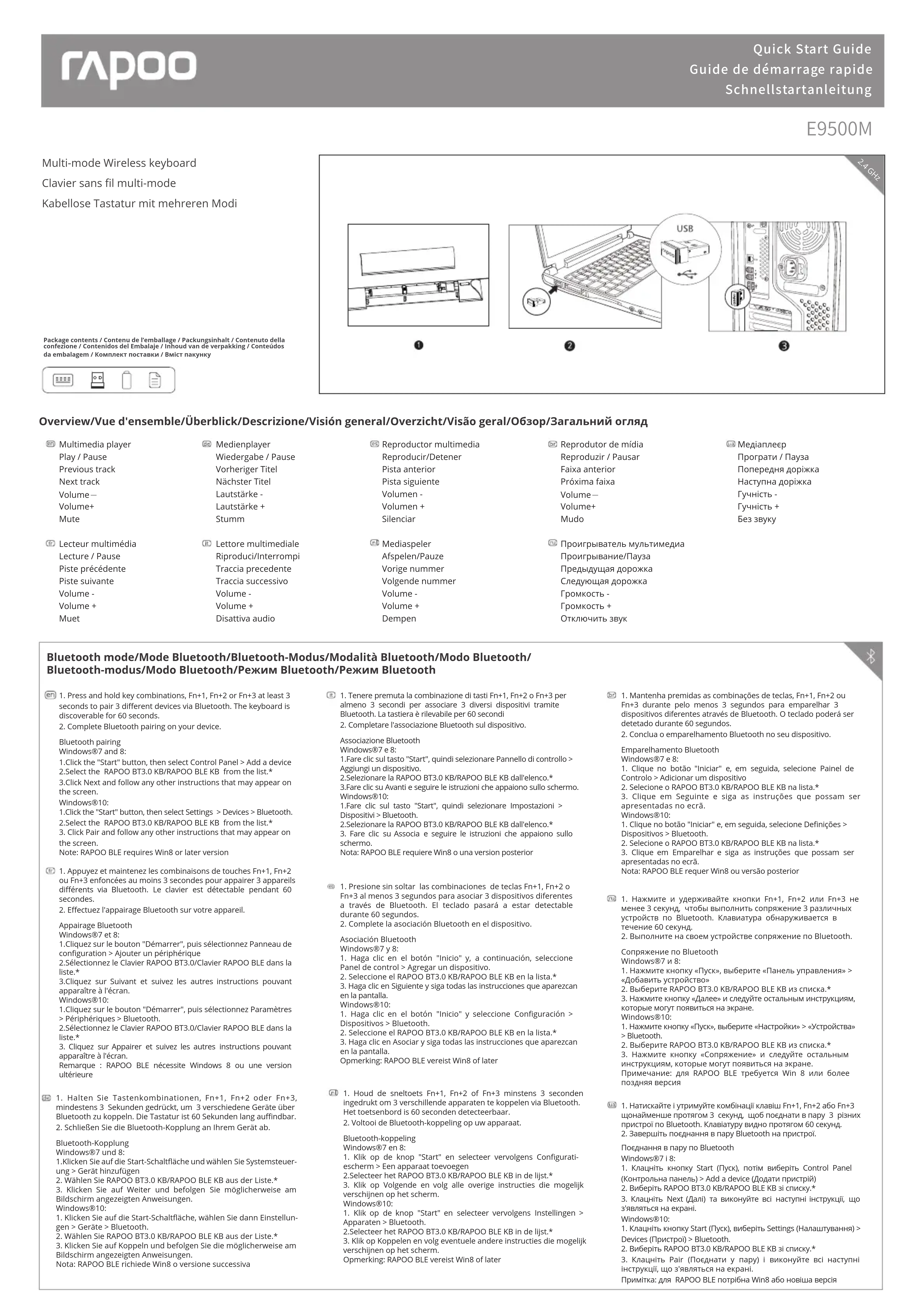E9500M - Clavier RAPOO - Notice d'utilisation et mode d'emploi gratuit