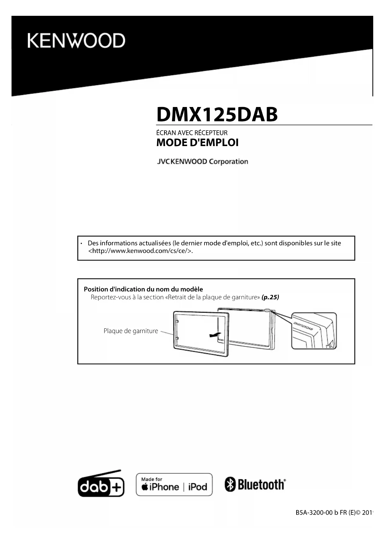 - Des informations actualisées (le dernier mode d'emploi, etc.) sont disponibles sur le site <http://www.kenwood.com/cs/ce/>. DMX125DAB