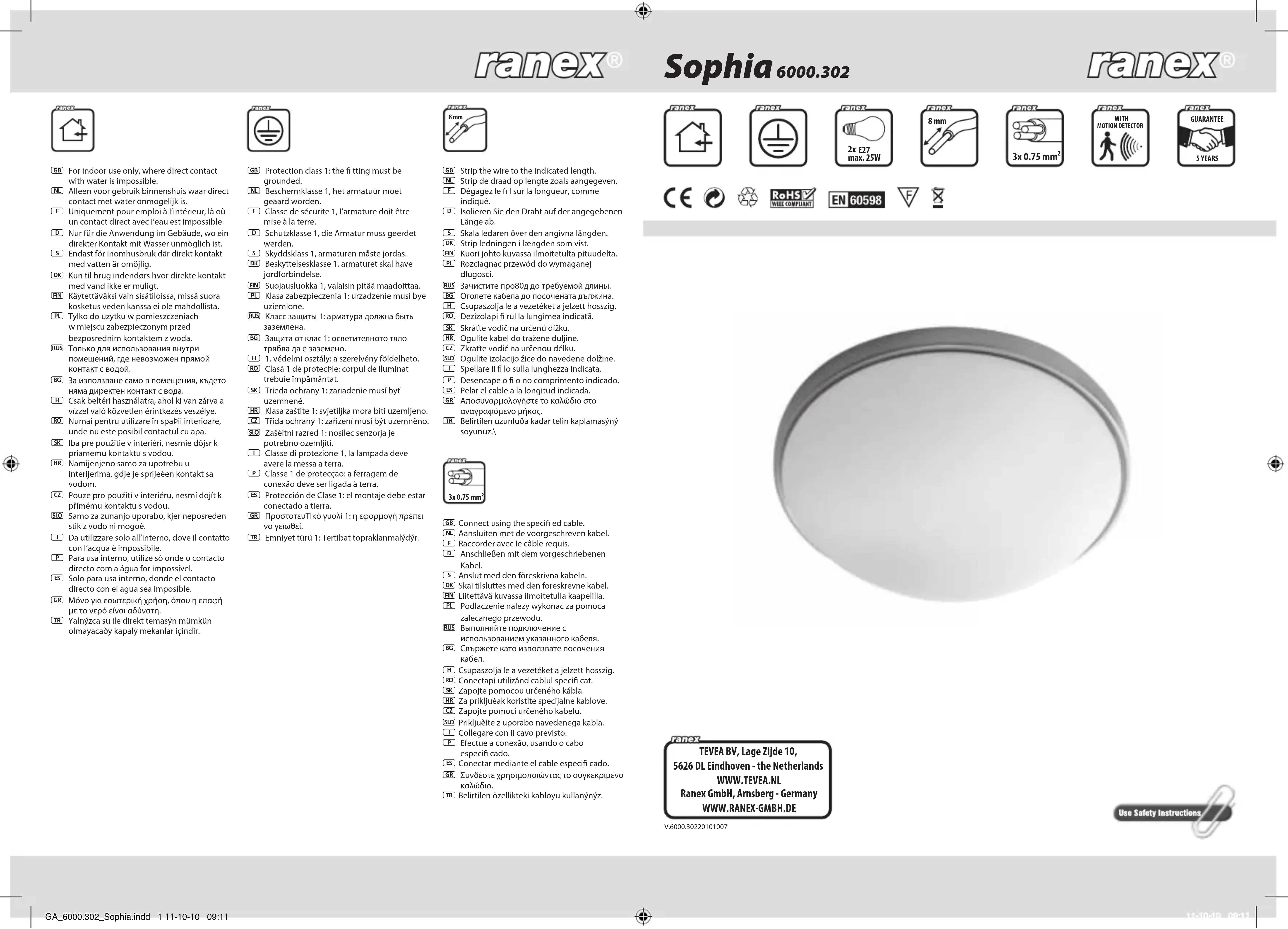 Sophia 6000.302 - Éclairage Ranex - Notice d'utilisation et mode d'emploi gratuit
