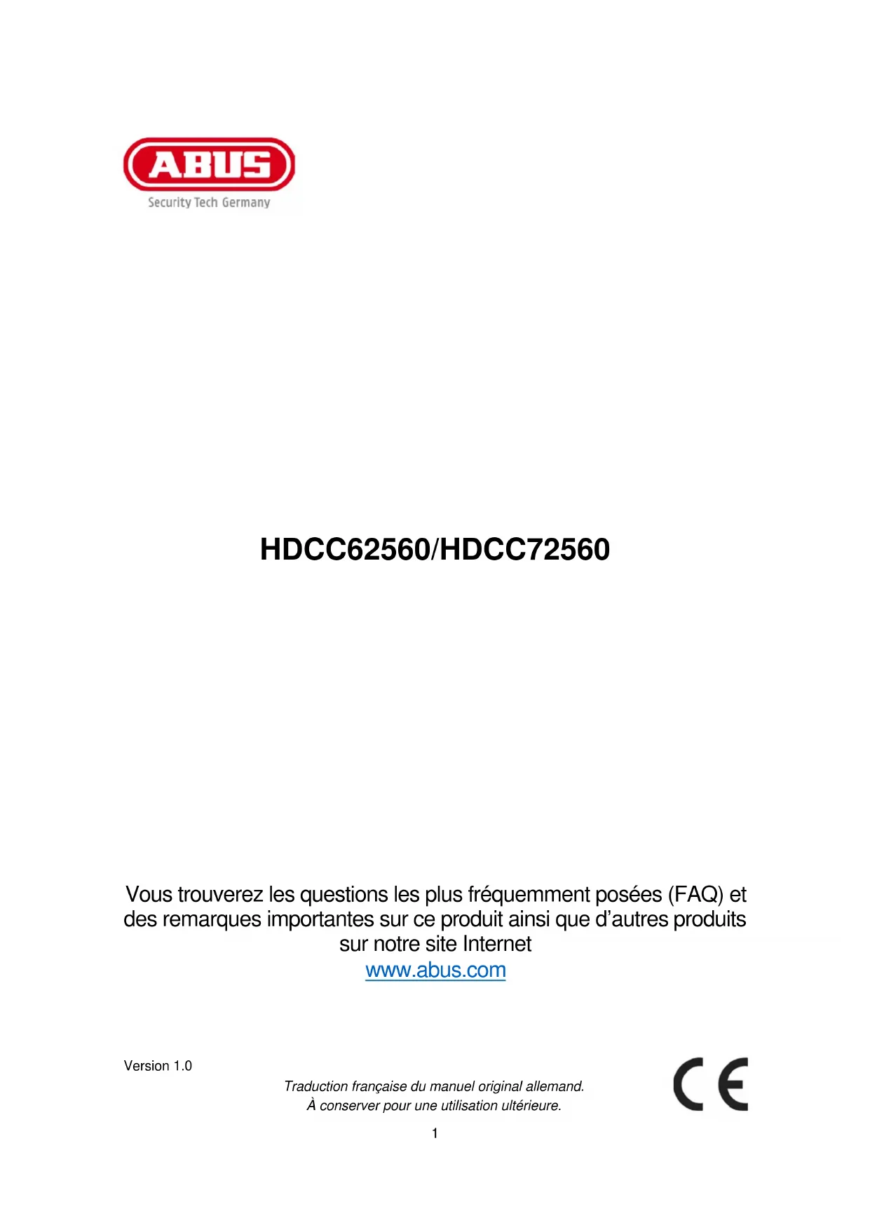 Retrouvez gratuitement la notice de l'appareil HDCC62560 ABUS au format PDF.