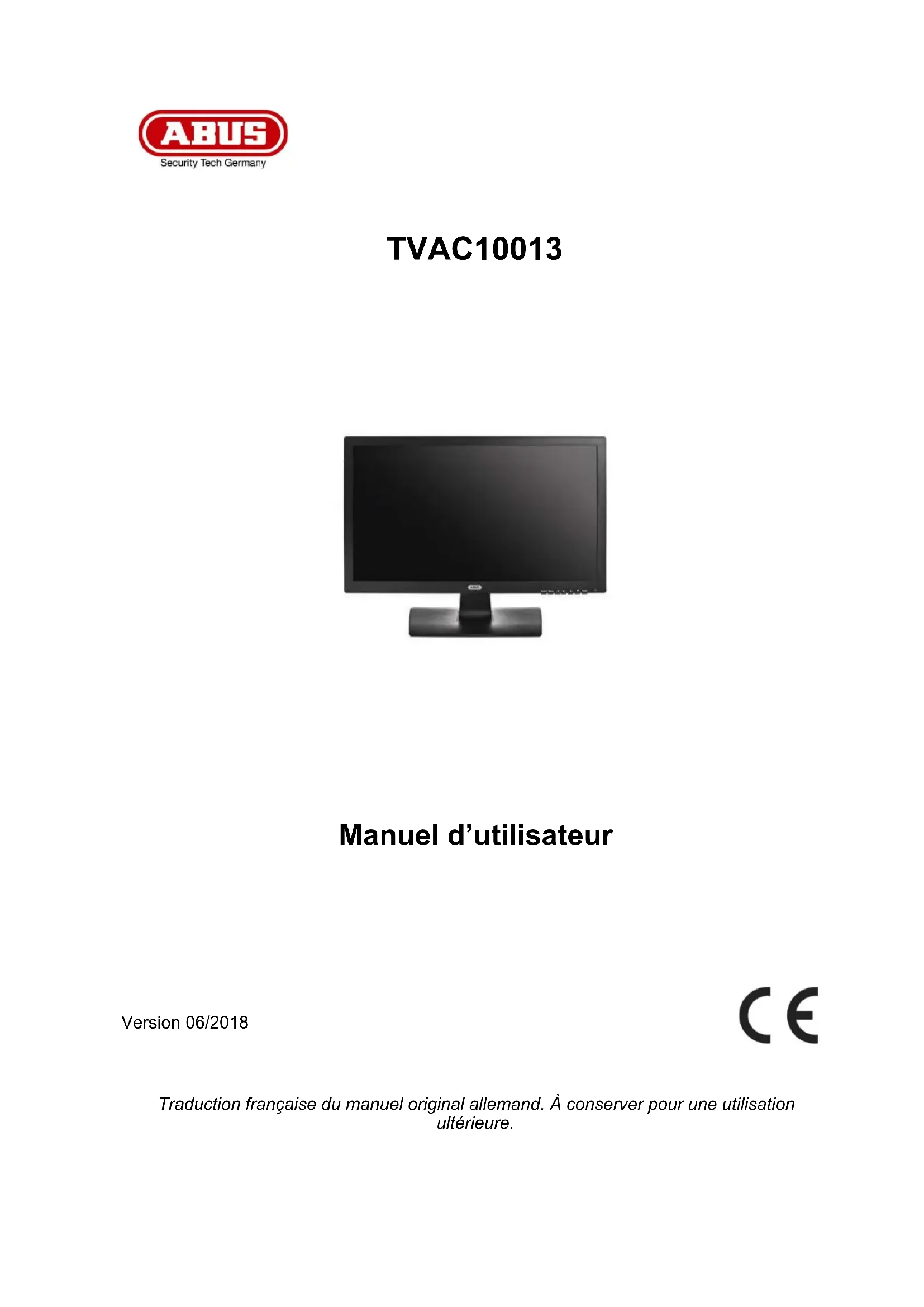 Téléchargez la notice de votre Moniteur au format PDF gratuitement ! Retrouvez votre notice TVAC10013 - ABUS et reprennez votre appareil électronique en main. Sur cette page sont publiés tous les documents nécessaires à l'utilisation de votre appareil TVAC10013 de la marque ABUS.