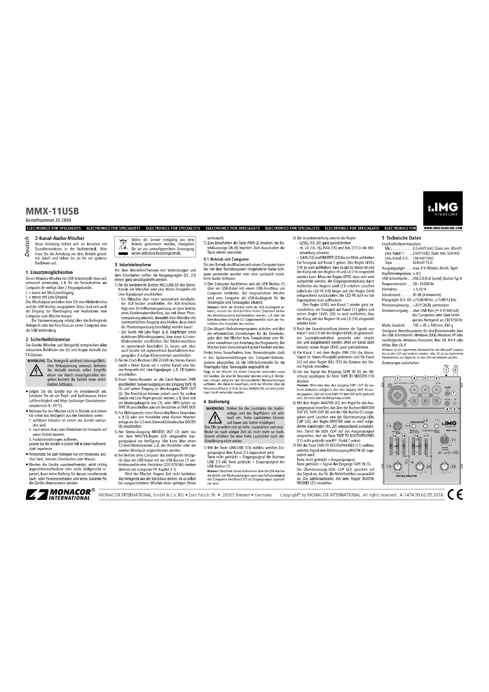 Retrouvez gratuitement la notice de l'appareil MMX11USB IMG STAGE LINE au format PDF.