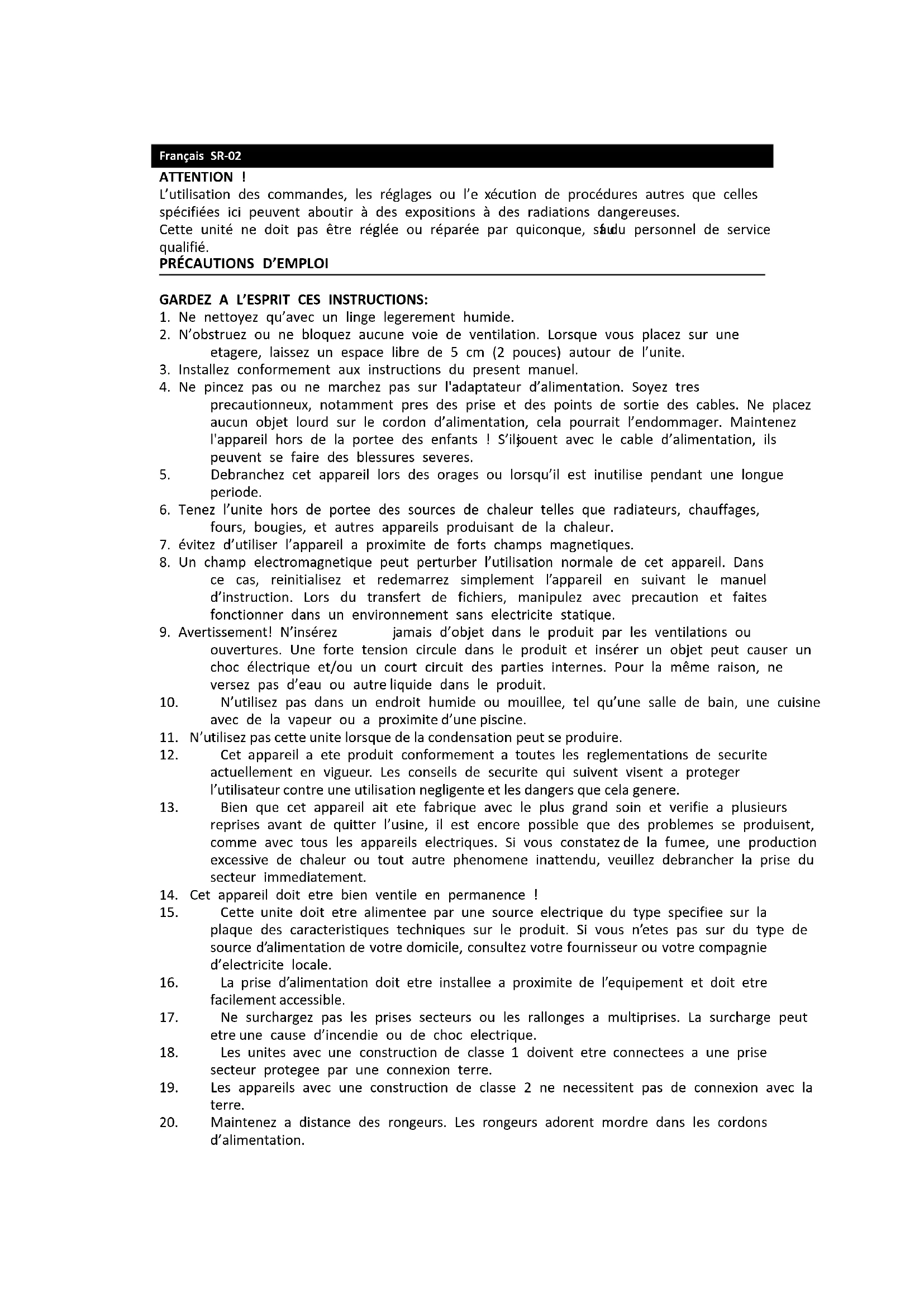 MODE D'EMPLOI SR02 LENCO