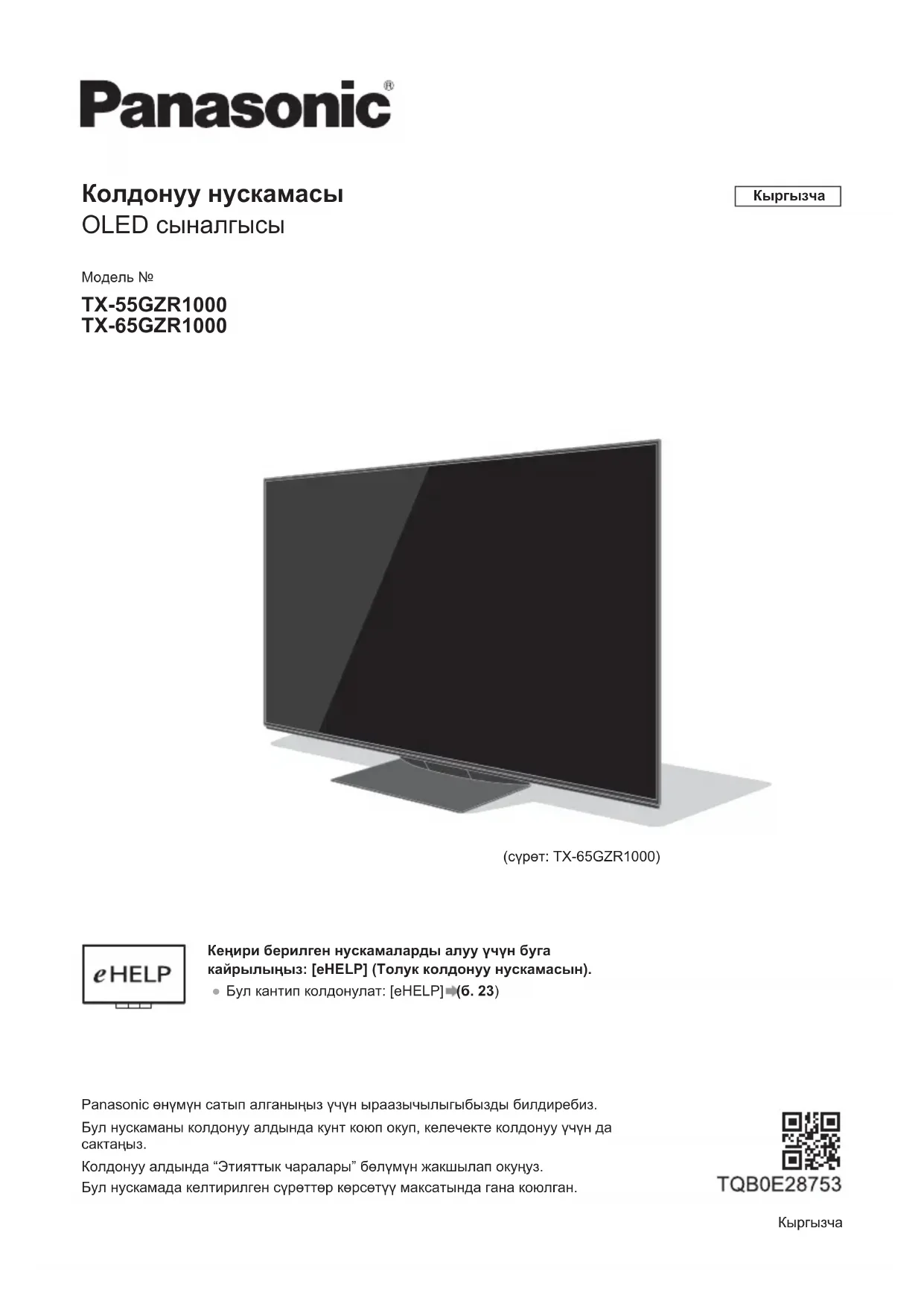Retrouvez gratuitement la notice de l'appareil TX65GZR1000 PANASONIC au format PDF.