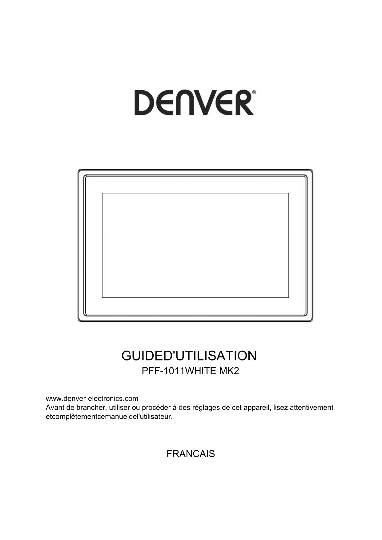 GUIDE D'UTILISATION www.denver-electronics.com Avant de brancher, utiliser ou procéder à des réglages de cet appareil, lisez attentivement et complètement ce manuel de l'utilisateur. FRANCAIS PFF-1011WHITE MK2Appuyer pour allumer ou éteindre l’écran, ou appuyer environ secondes