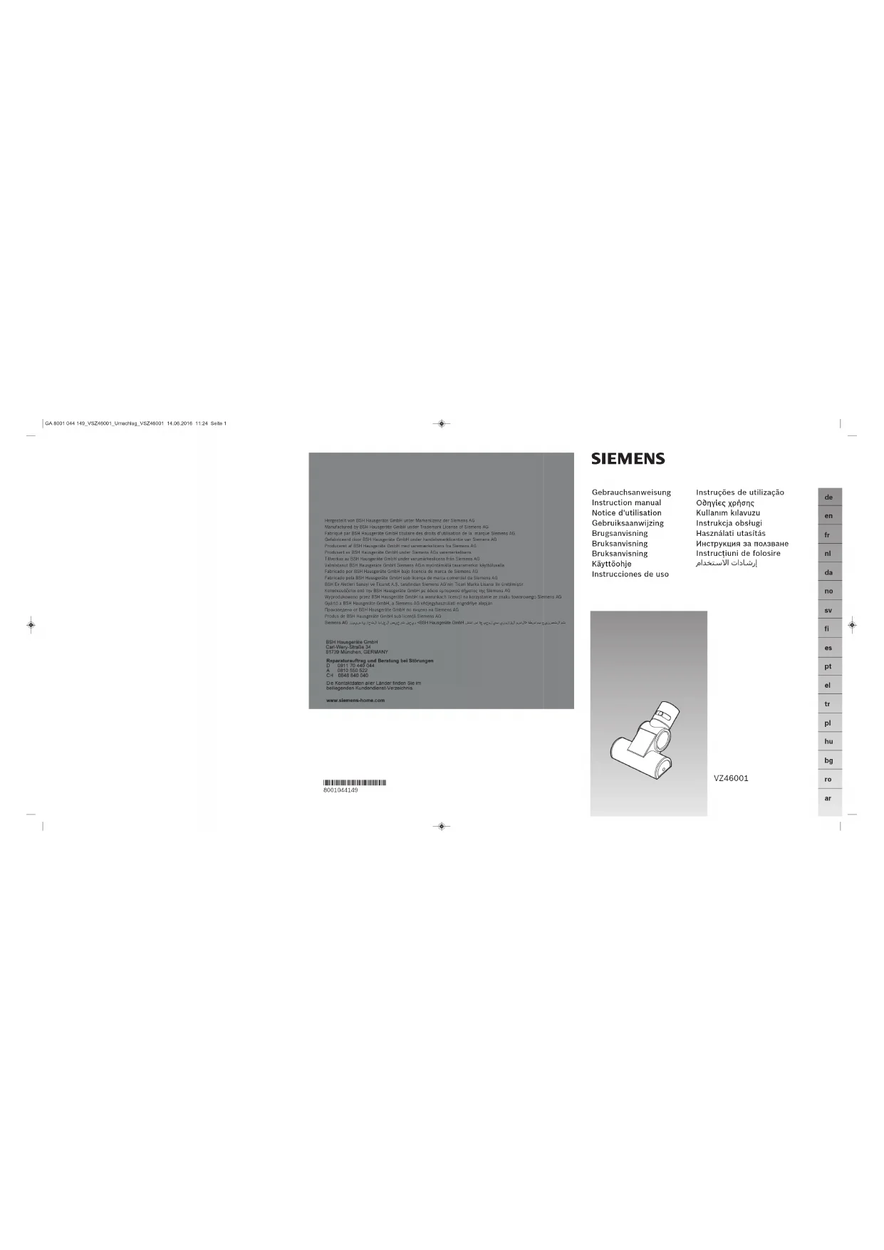 Retrouvez gratuitement la notice de l'appareil VZ46001 SIEMENS au format PDF.