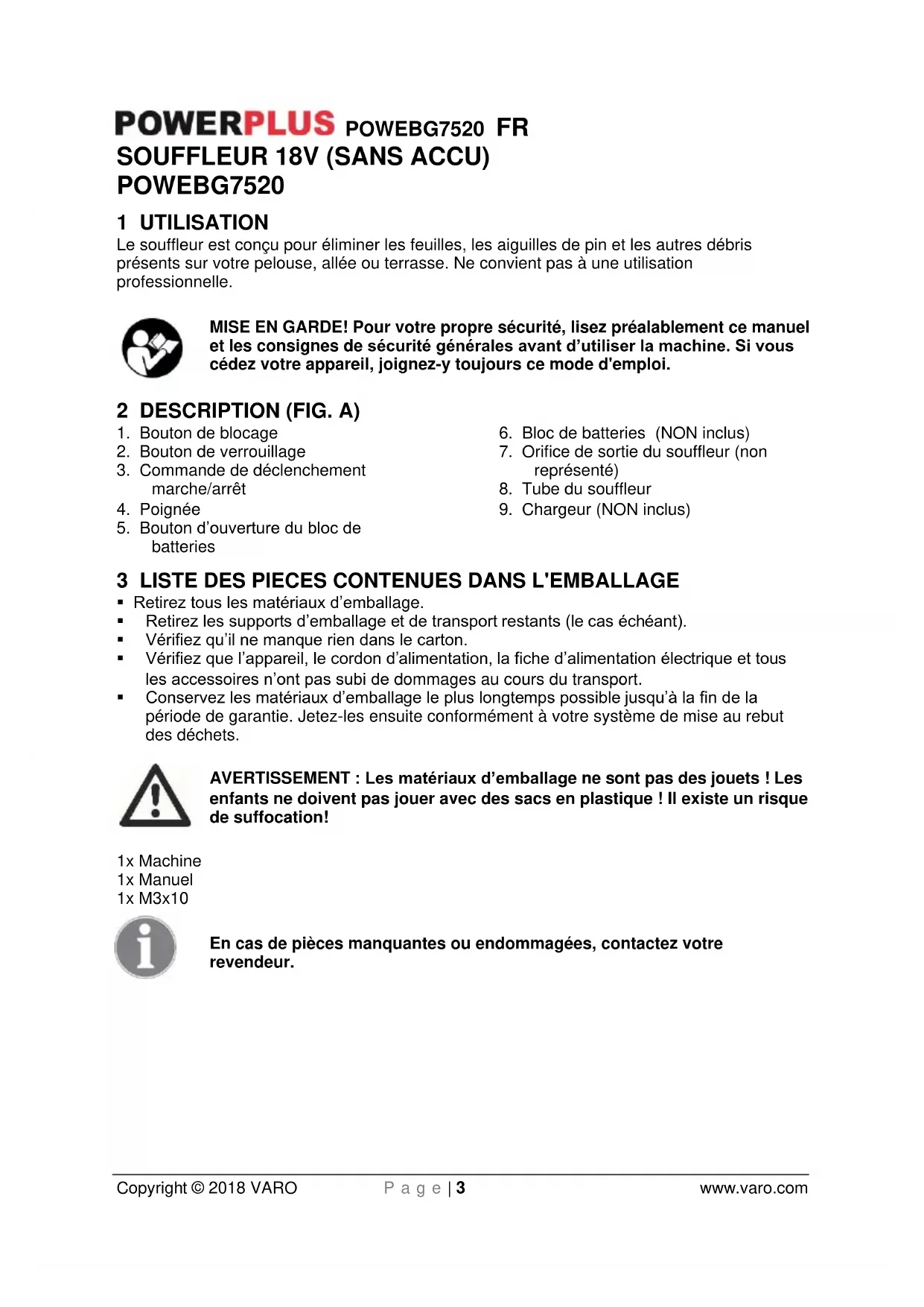 POWEBG7520 - Souffleur PowerPlus - Notice d'utilisation et mode d'emploi gratuit