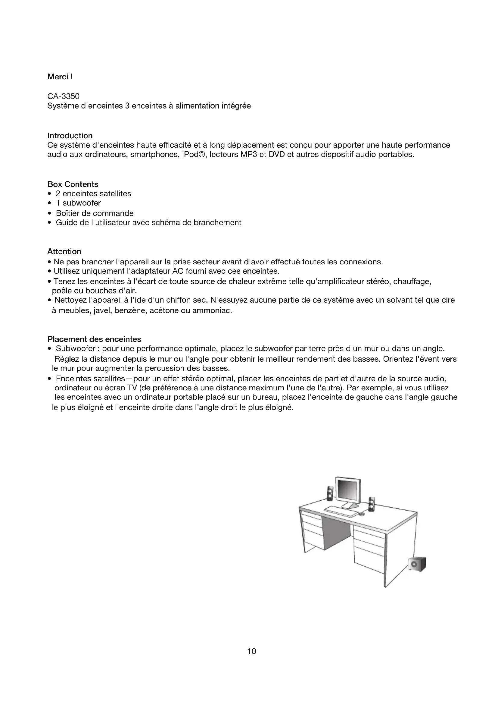 Retrouvez gratuitement la notice de l'appareil CA3350 Cyber Acoustics au format PDF.