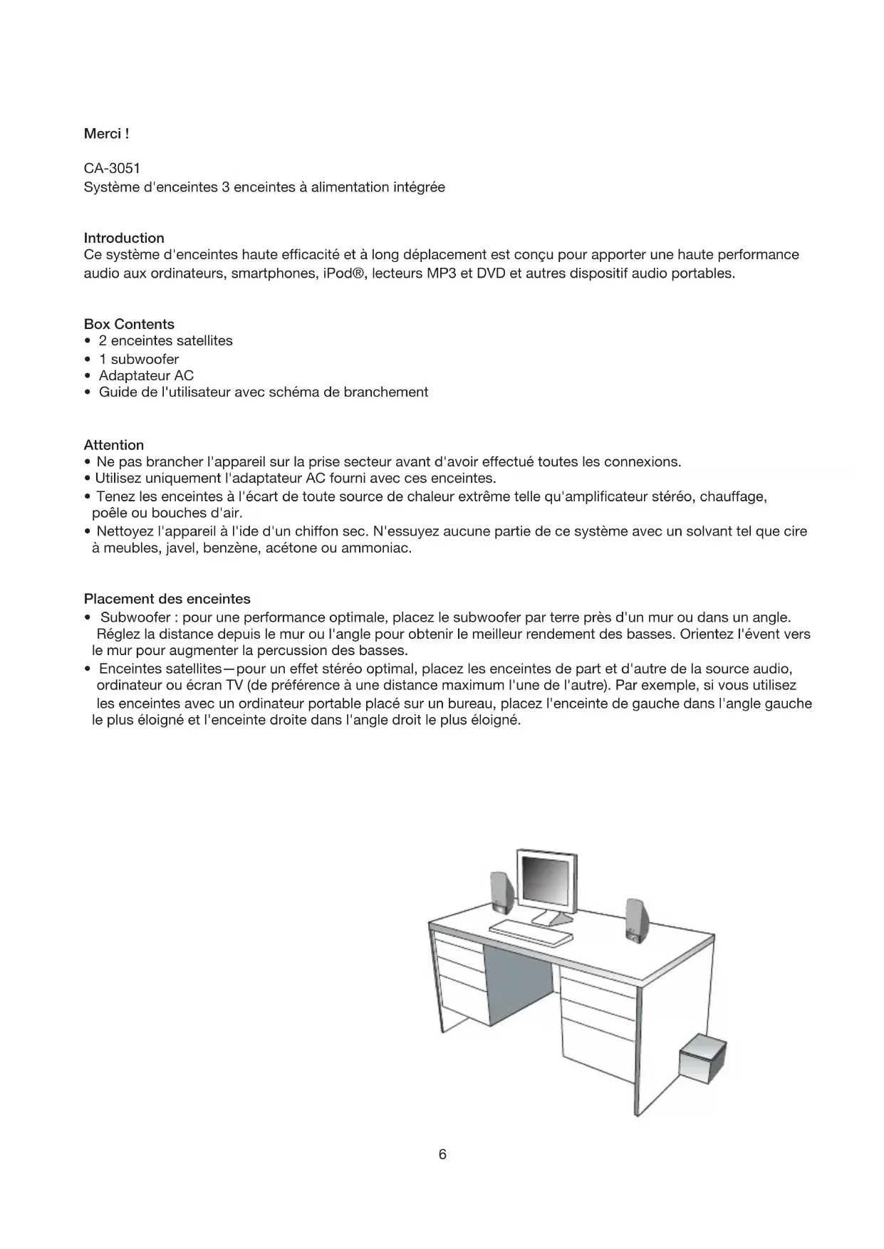 MODE D'EMPLOI CA3051 Cyber Acoustics