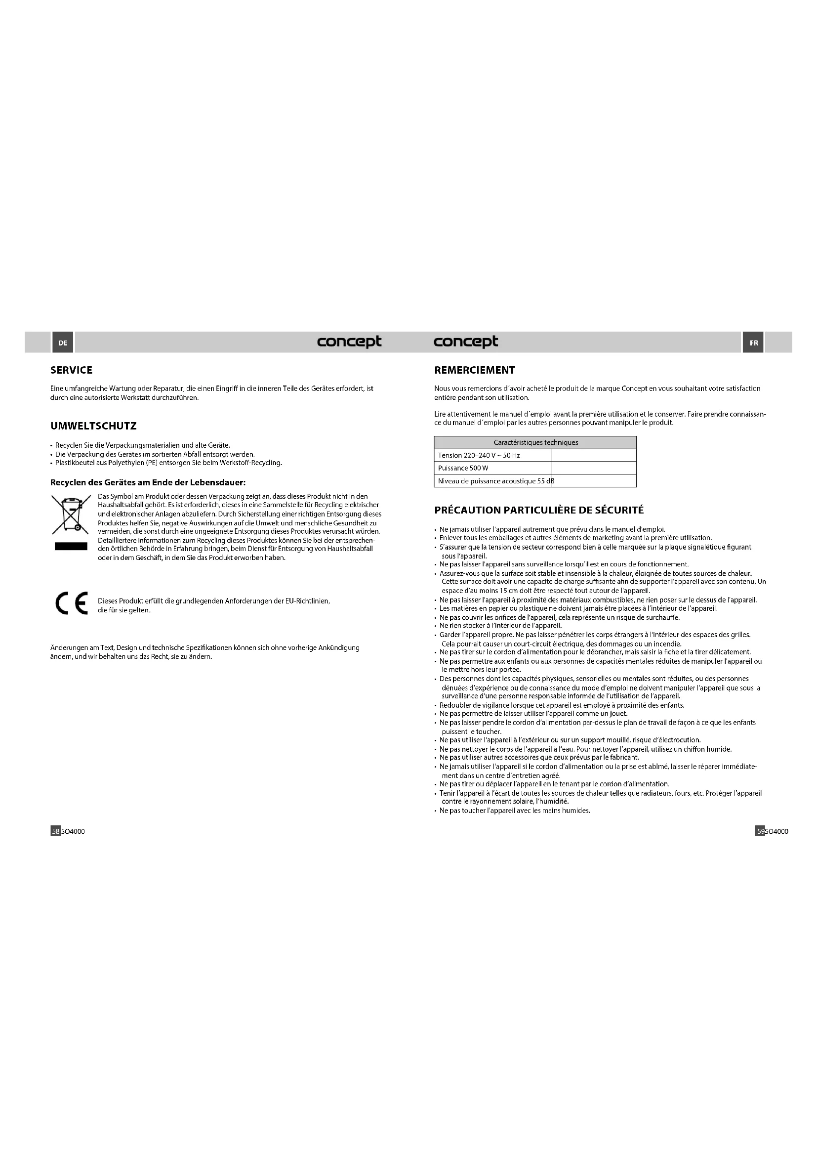 Retrouvez gratuitement la notice de l'appareil SO4000 Concept au format PDF.