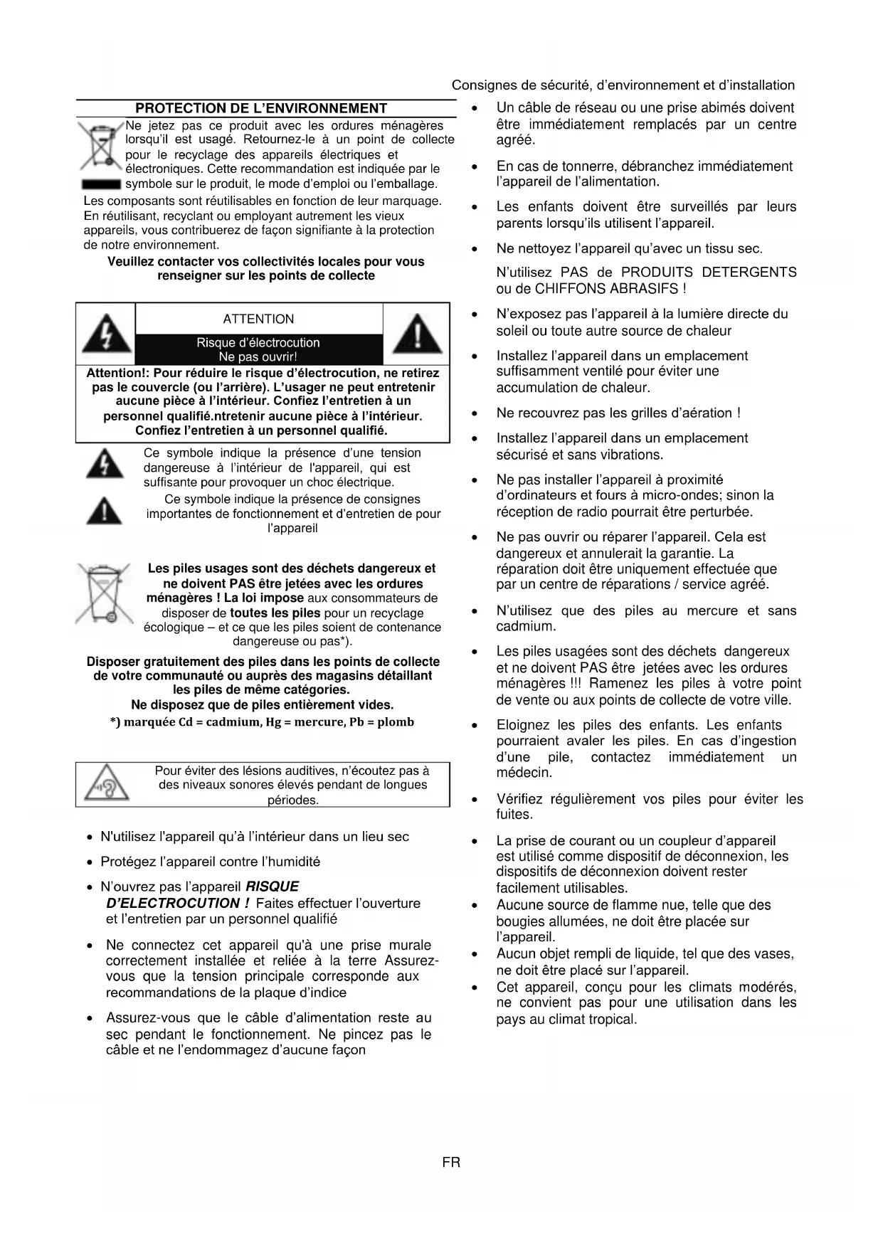 - Les piles usagées sont des déchets dangereux et ne doivent PAS être jetées avec les ordures ménagères !!! Ramenez les piles à votre point de vente ou aux points de collecte de votre ville.