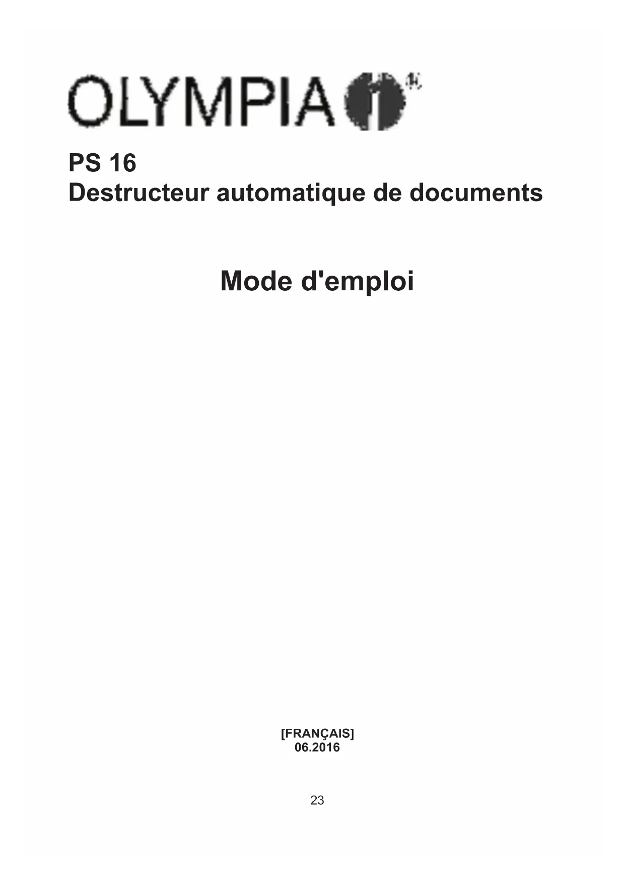 2705 - Destructeur de document OLYMPIA - Notice d'utilisation et mode d'emploi gratuit