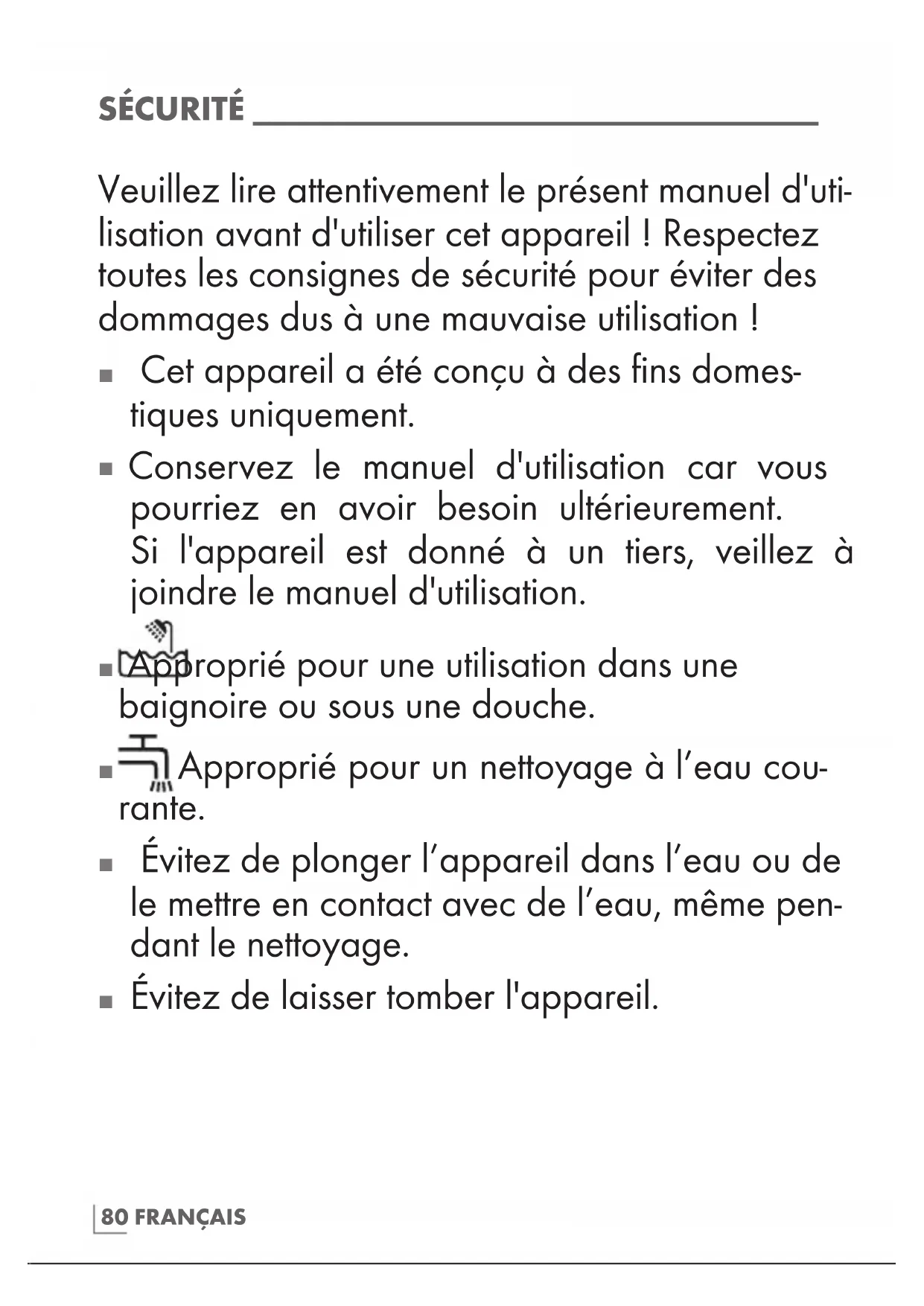 Approprié pour une utilisation dans une baignoire ou sous une douche.