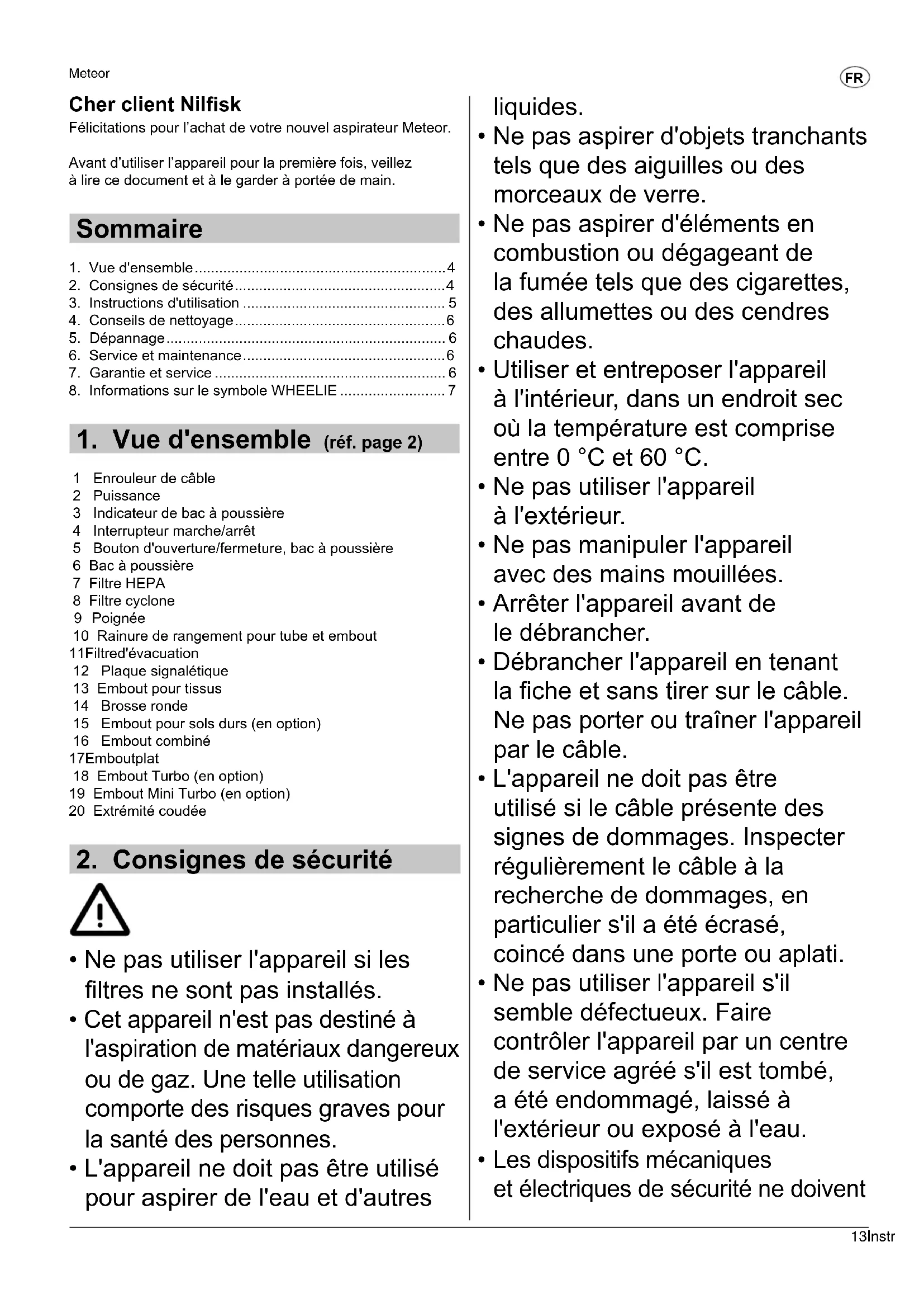 Cher client Nilsk Félicitations pour l’achat de votre nouvel aspirateur Meteor. Avant d’utiliser l’appareil pour la première fois, veillez à lire ce document et à le garder à portée de main. Sommaire