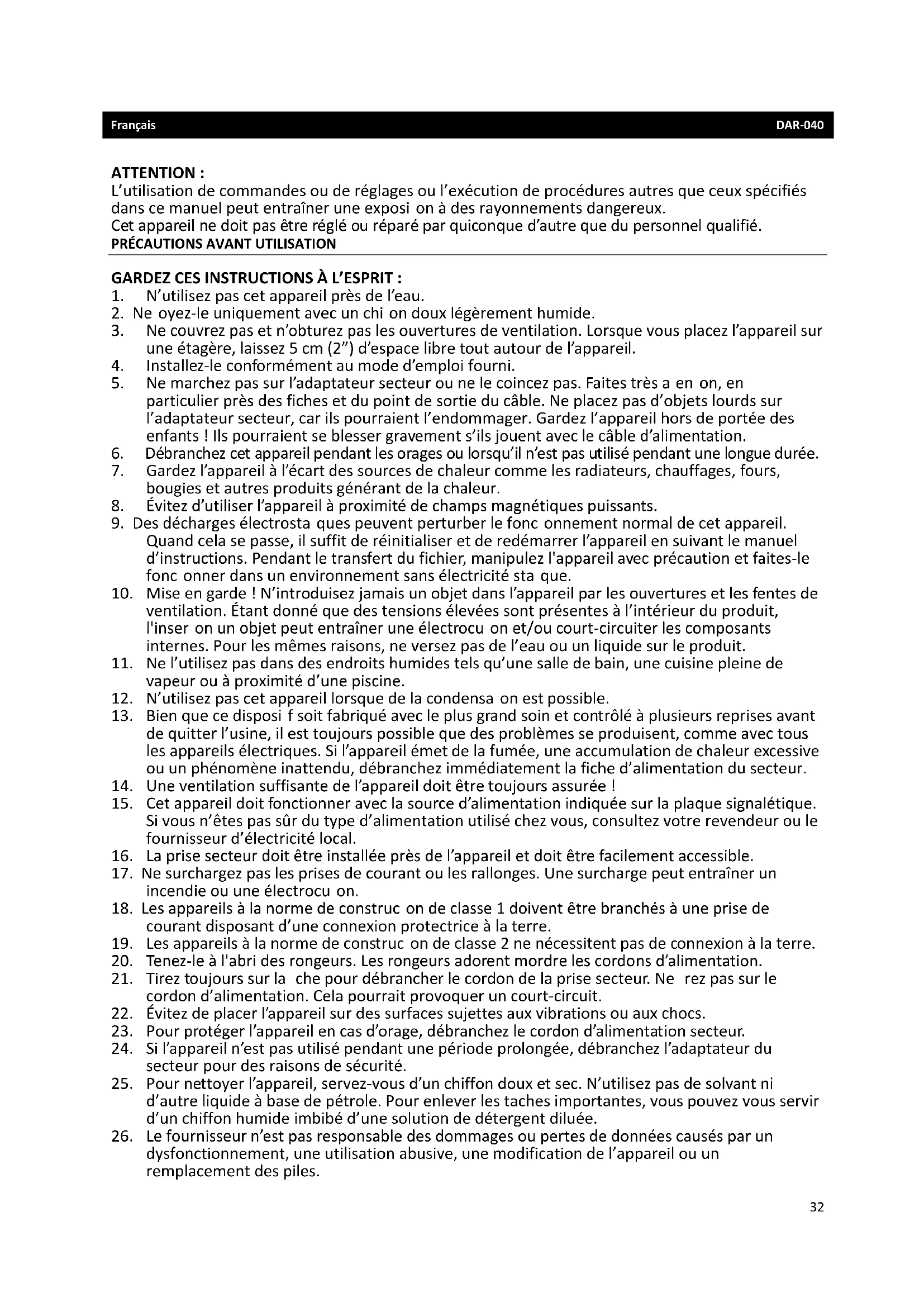 MODE D'EMPLOI DAR040 LENCO