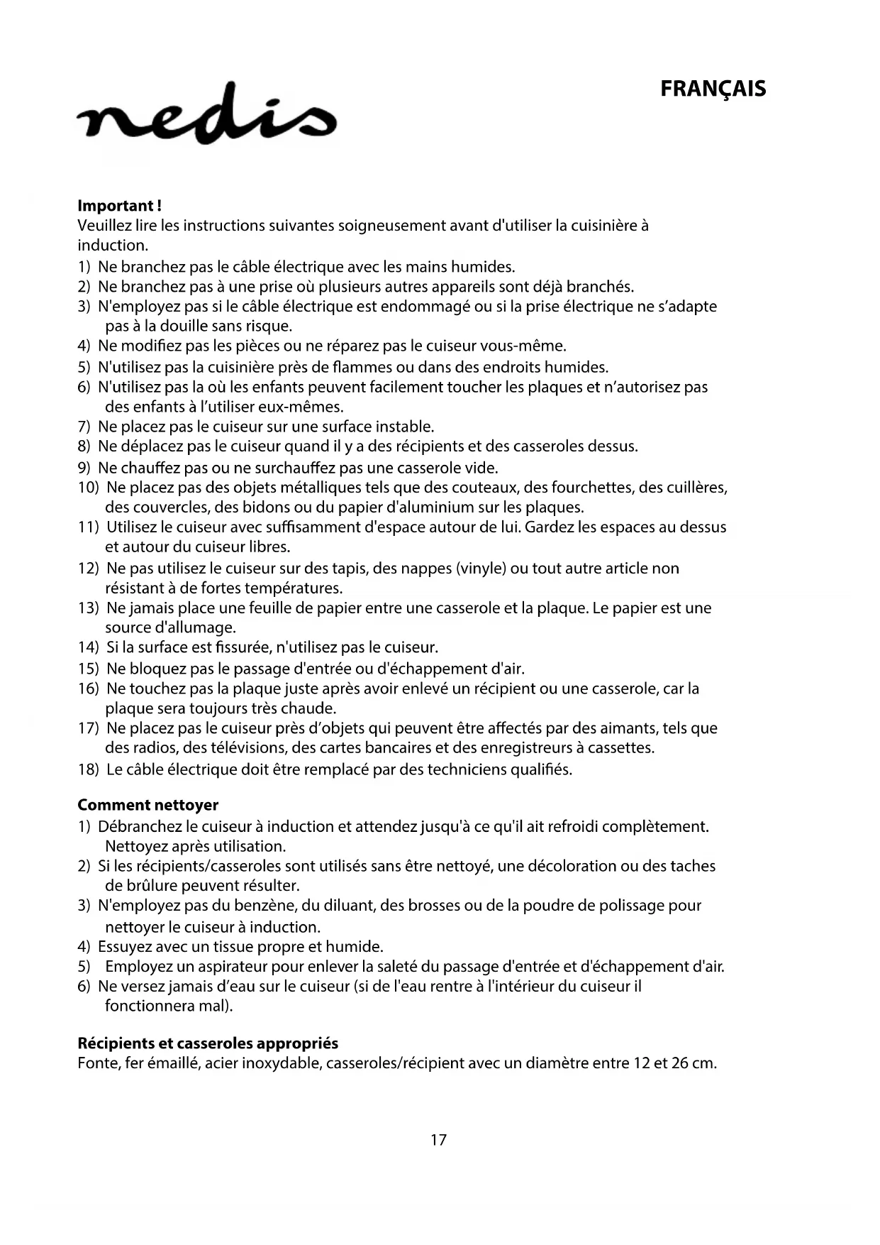 16) Ne touchez pas la plaque juste après avoir enlevé un récipient ou une casserole, car la