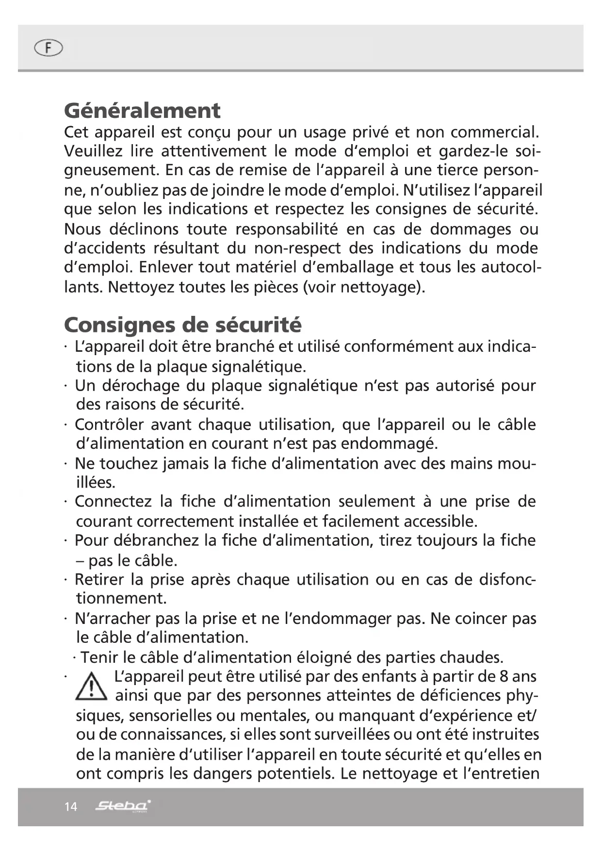 Retrouvez gratuitement la notice de l'appareil MX 600 Smart STEBA au format PDF.