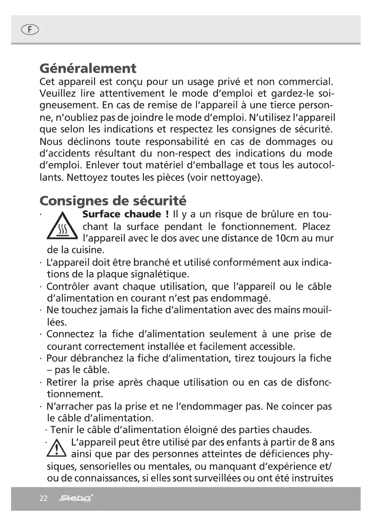 Retrouvez gratuitement la notice de l'appareil SG 65 STEBA au format PDF.