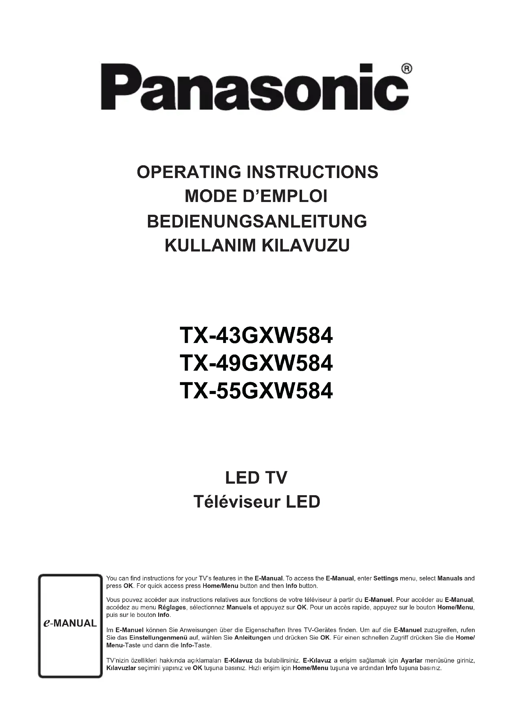 Retrouvez gratuitement la notice de l'appareil TX49GXW584 PANASONIC au format PDF.