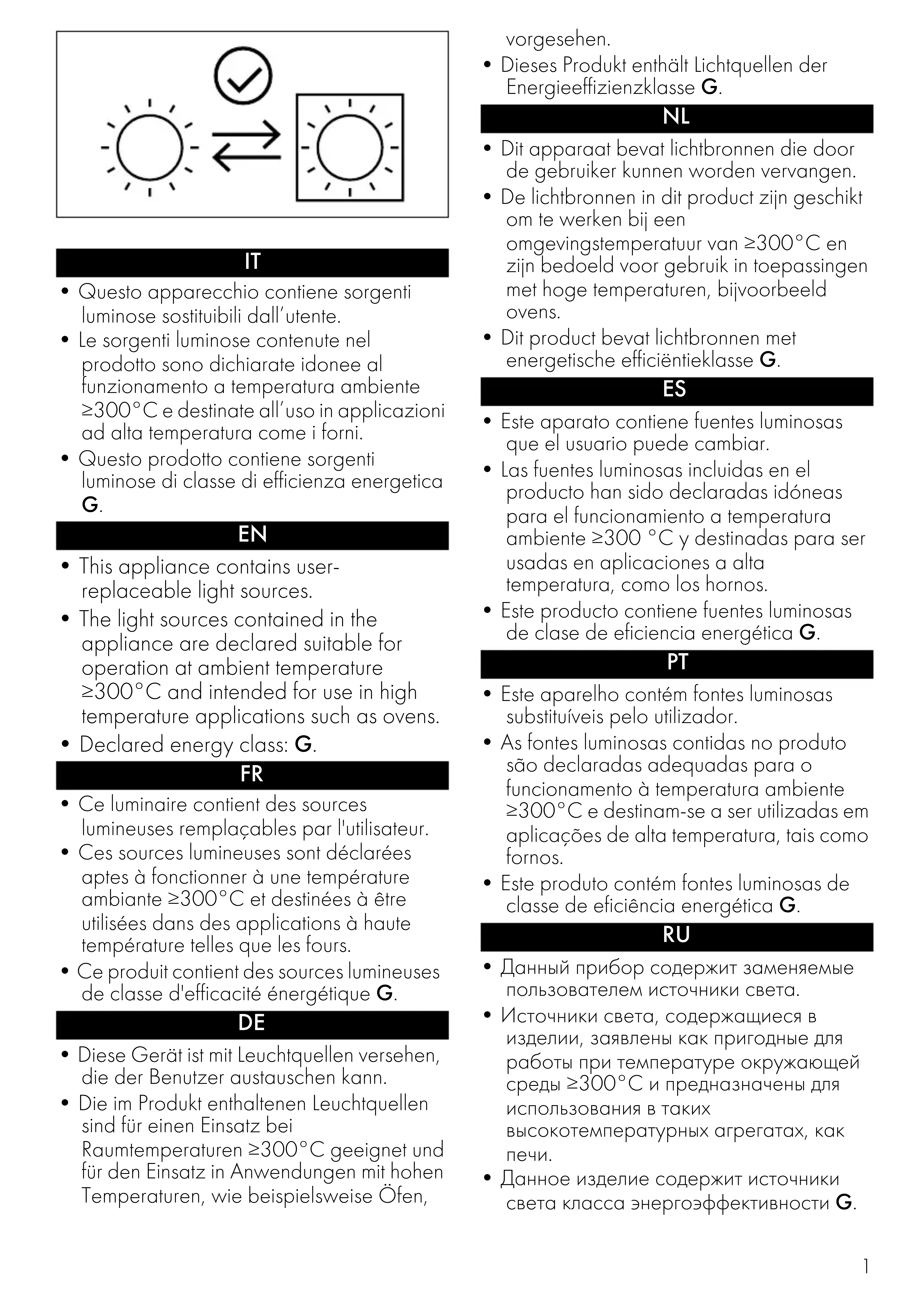 - Ce produit contient des sources lumineuses de classe d'efficacité énergétique G.