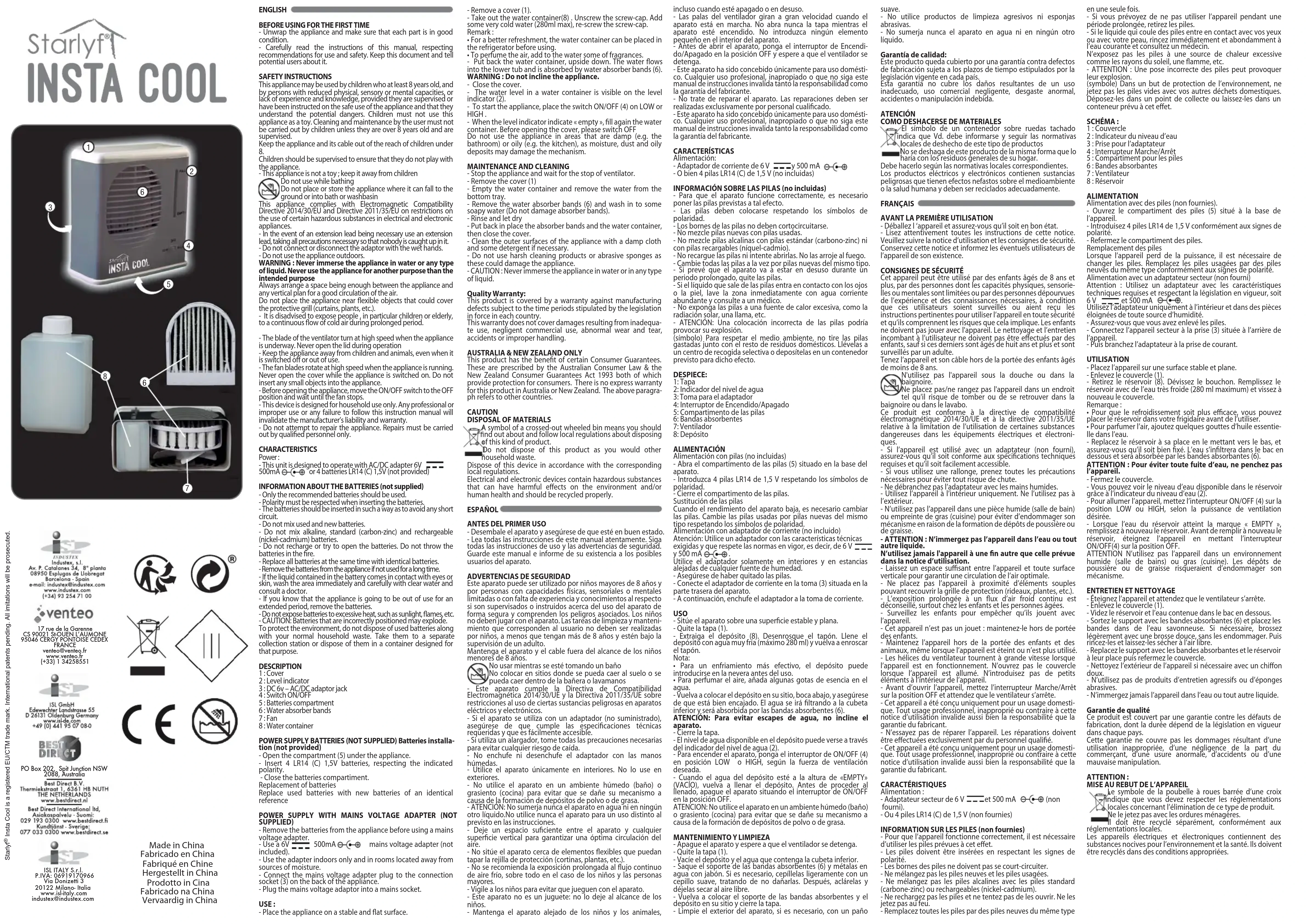Retrouvez gratuitement la notice de l'appareil Insta Cool Starlyf au format PDF.