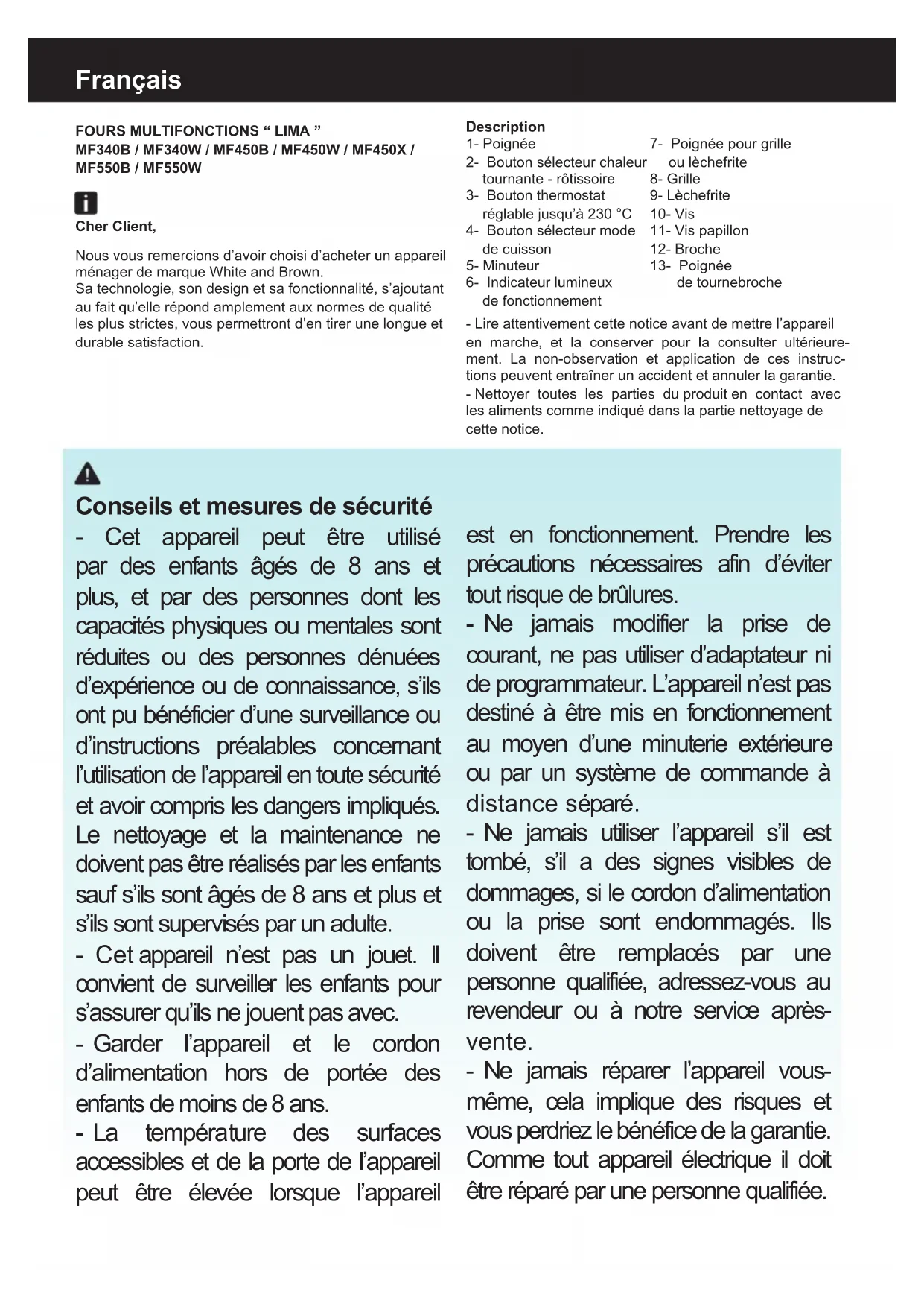 MF450B - Four WHITE AND BROWN - Notice d'utilisation et mode d'emploi gratuit