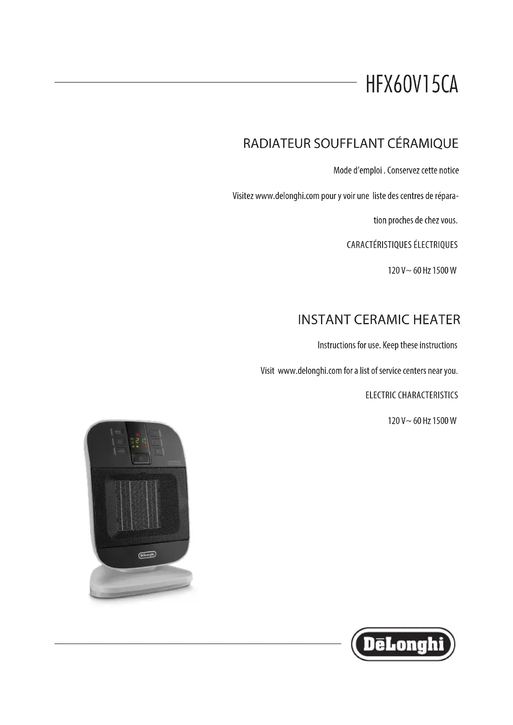 HFX60V20 - Chauffage DELONGHI - Notice d'utilisation et mode d'emploi gratuit