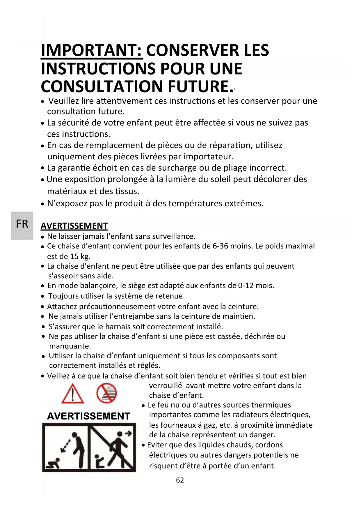 - La sécurité de votre infant peut être affectée si vous ne suivez pas ces instructions.