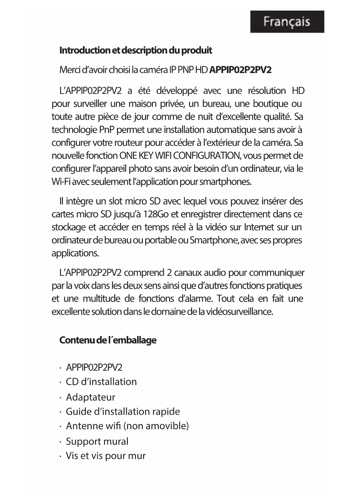 Retrouvez gratuitement la notice de l'appareil appIP02P2PV2 Approx au format PDF.