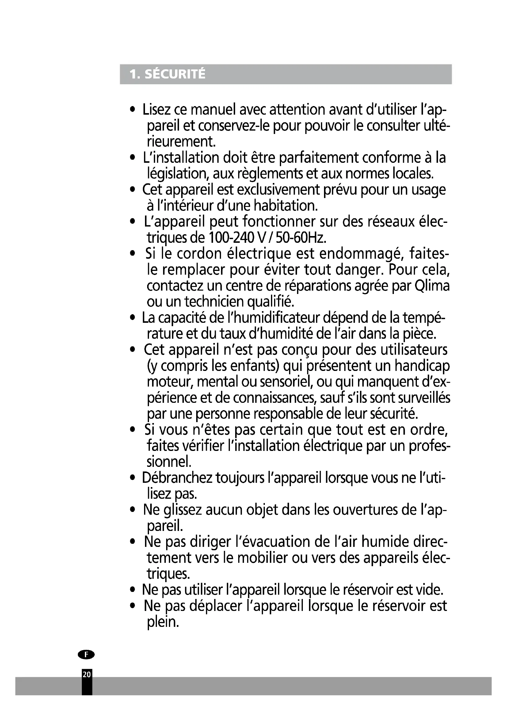 H408 - Humidificateur QLIMA - Notice d'utilisation et mode d'emploi gratuit