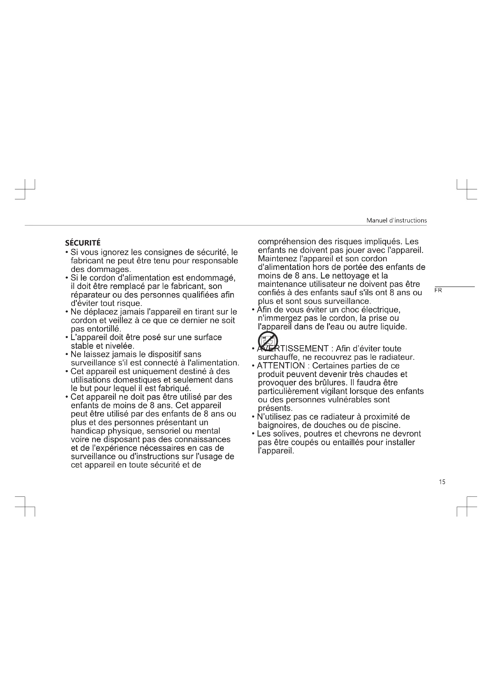 - AVERTISSEMENT: N'utilisez pas ce radiateur dans une petite pièce, occupée par des personnes incapables d'abandonner les lieux d'elles-mêmes, sauf si une surveillance constante est assurée.