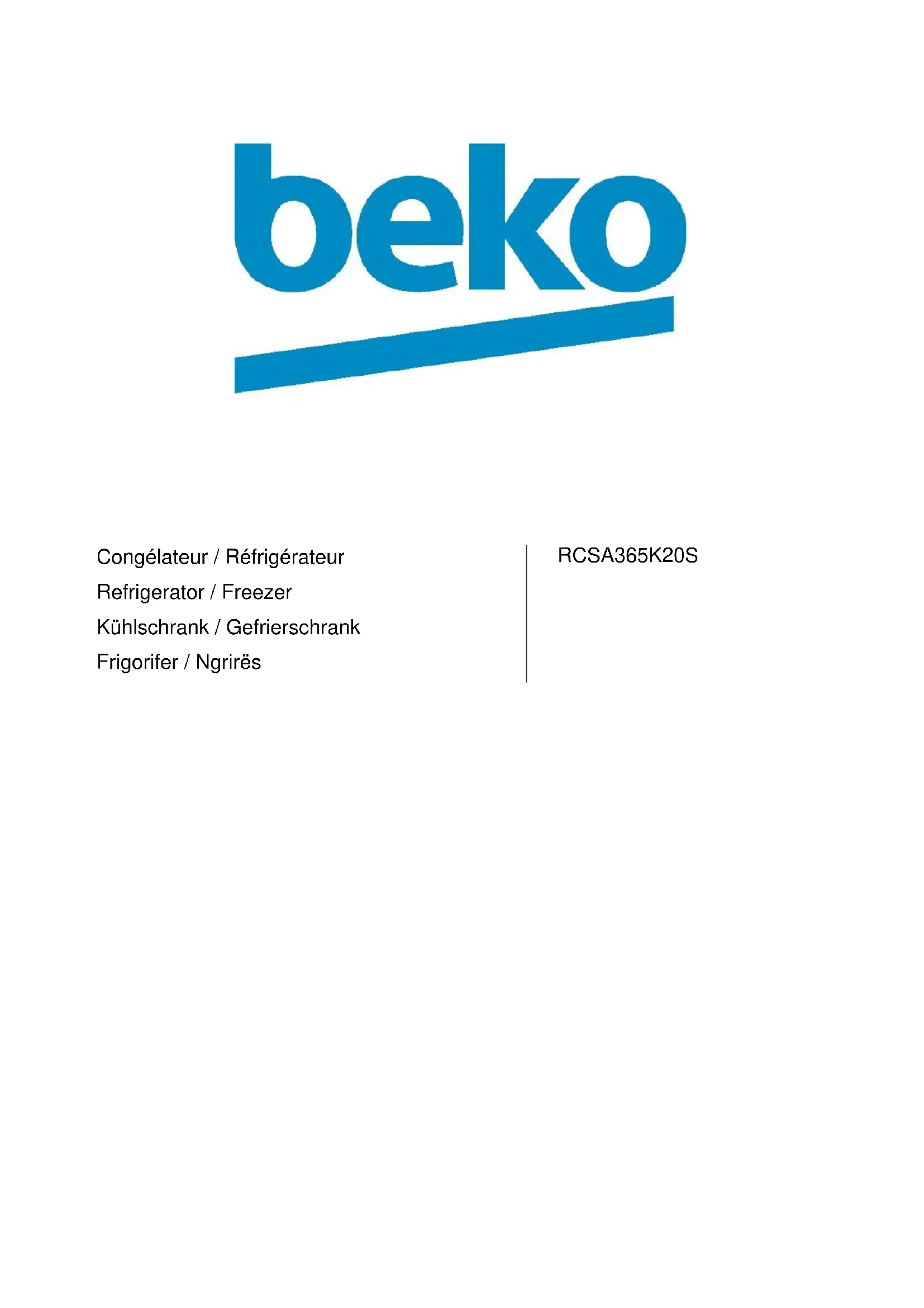 RCSA365K20S - Réfrigérateur BEKO - Notice d'utilisation et mode d'emploi gratuit