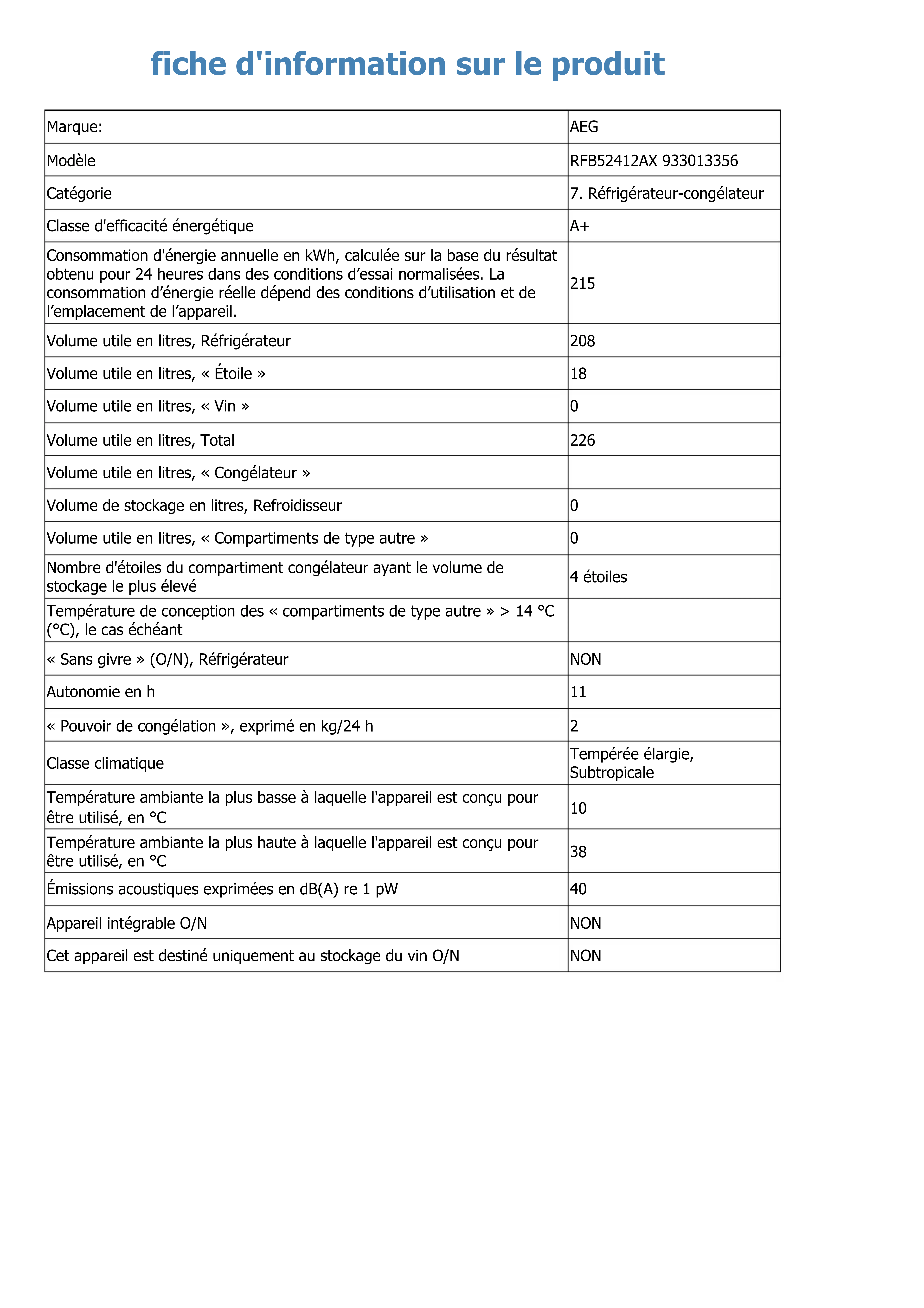 RFB52412AX - Réfrigérateur AEG - Notice d'utilisation et mode d'emploi gratuit