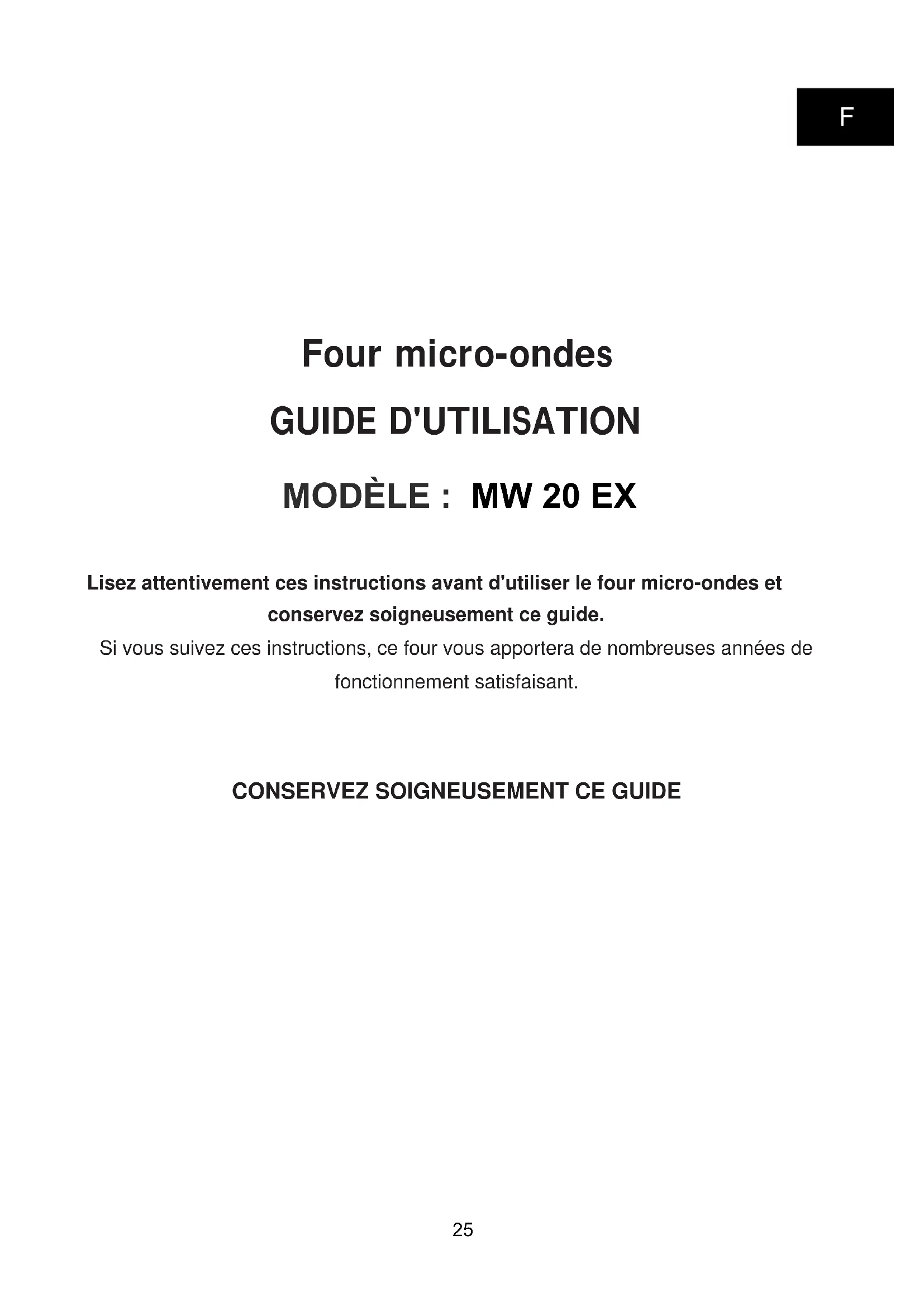 MODE D'EMPLOI MW20EX MIDEA