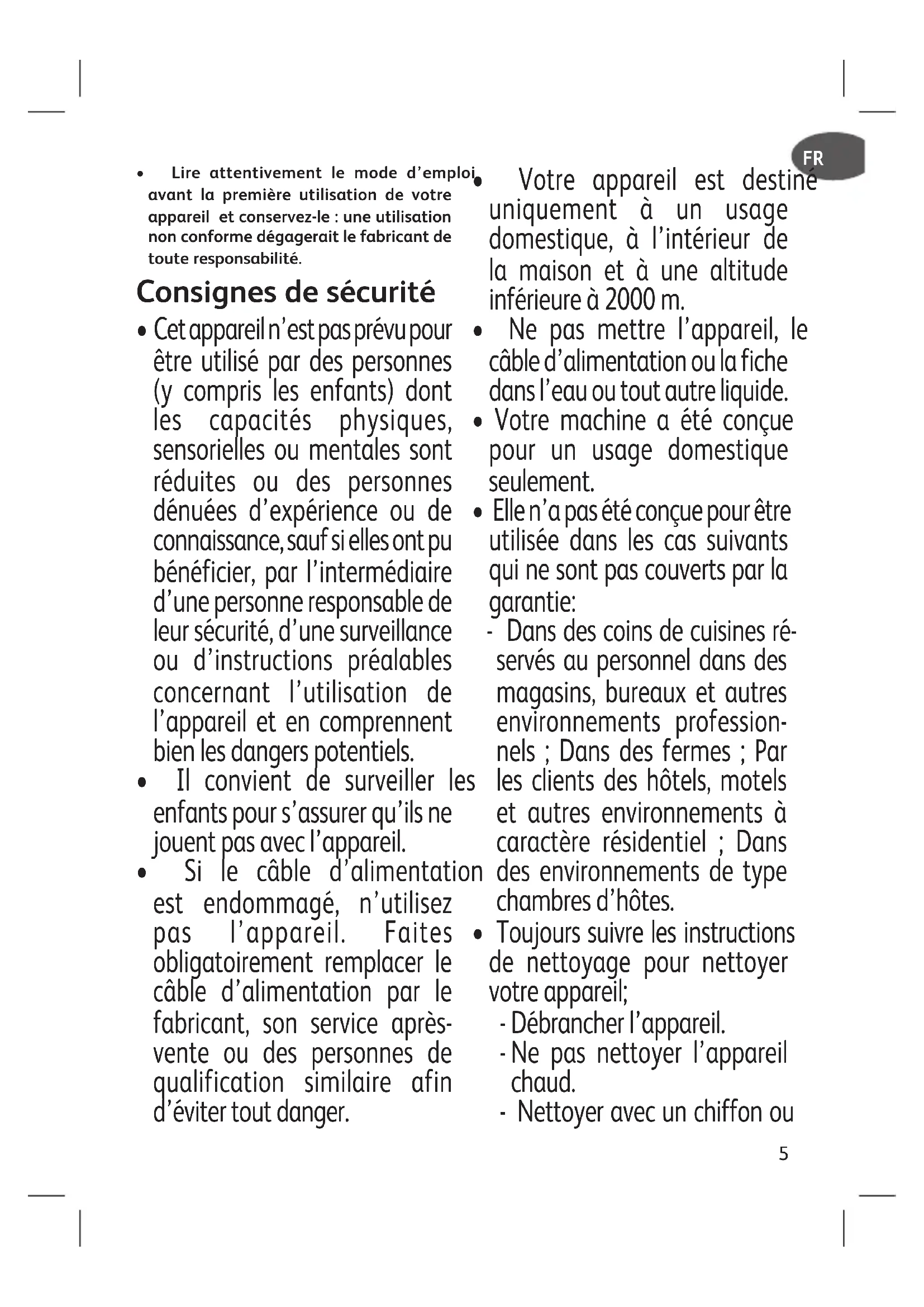 - Lire attentivement le mode d’emploi avant la première utilisation de votre appareil et conservez-le : une utilisation non conforme dégagerait le fabricant de toute responsabilité. Consignes de sécurité
