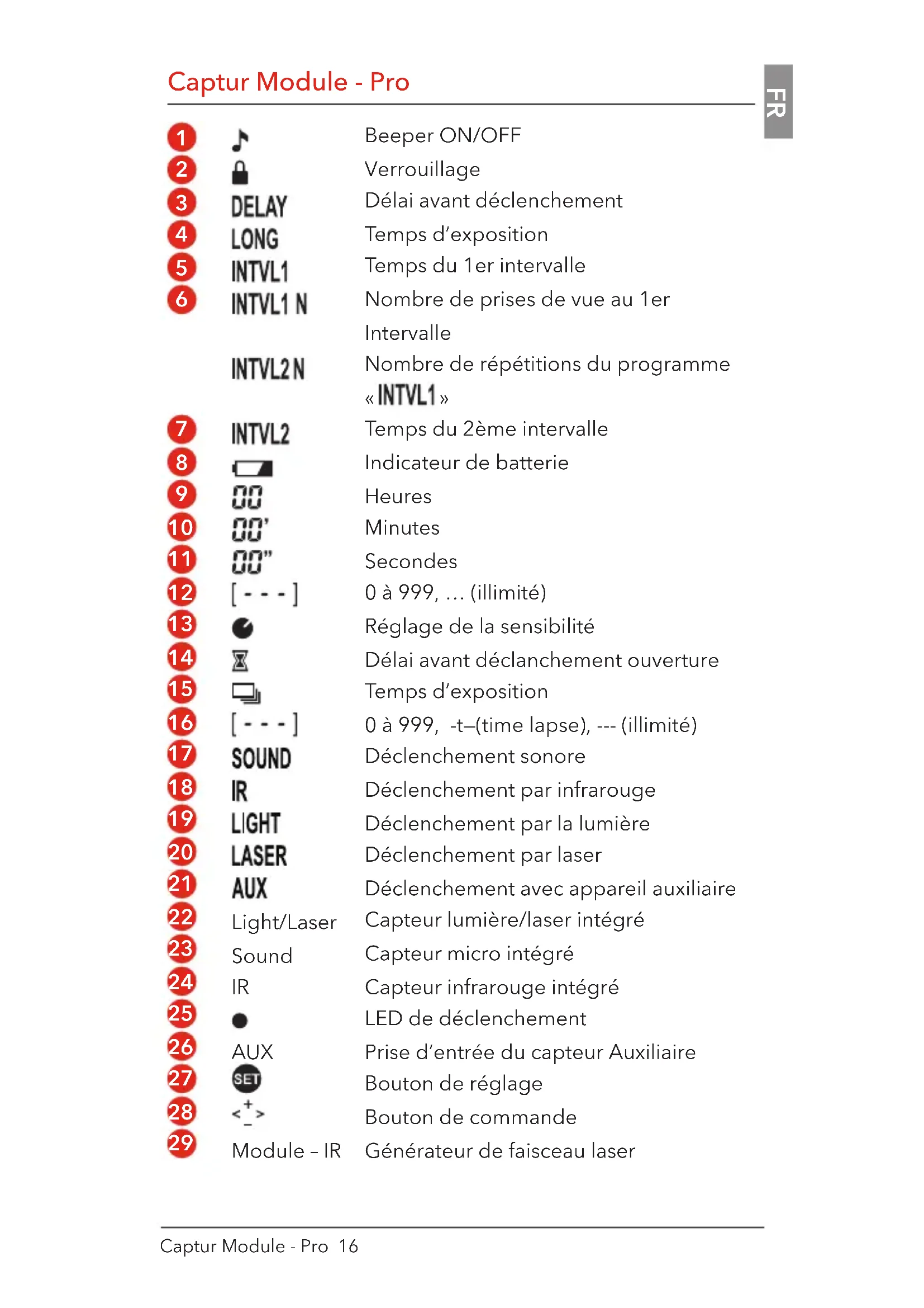 | 18 IR | Aligner Captur Module - IR 29 avec le capteur 24 pour générer un faisceau Lichtschranke | La rupture du faisceau déclenchera l'appareil |