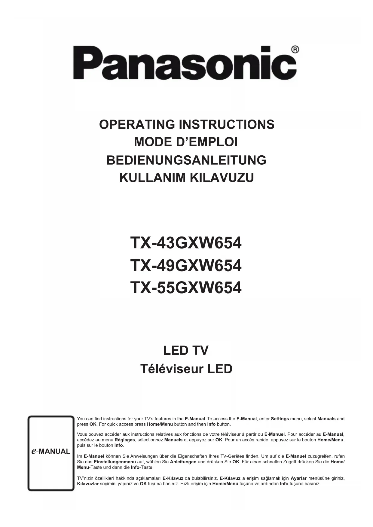 TX-43GXW654 TX-49GXW654 TX-55GXW654
