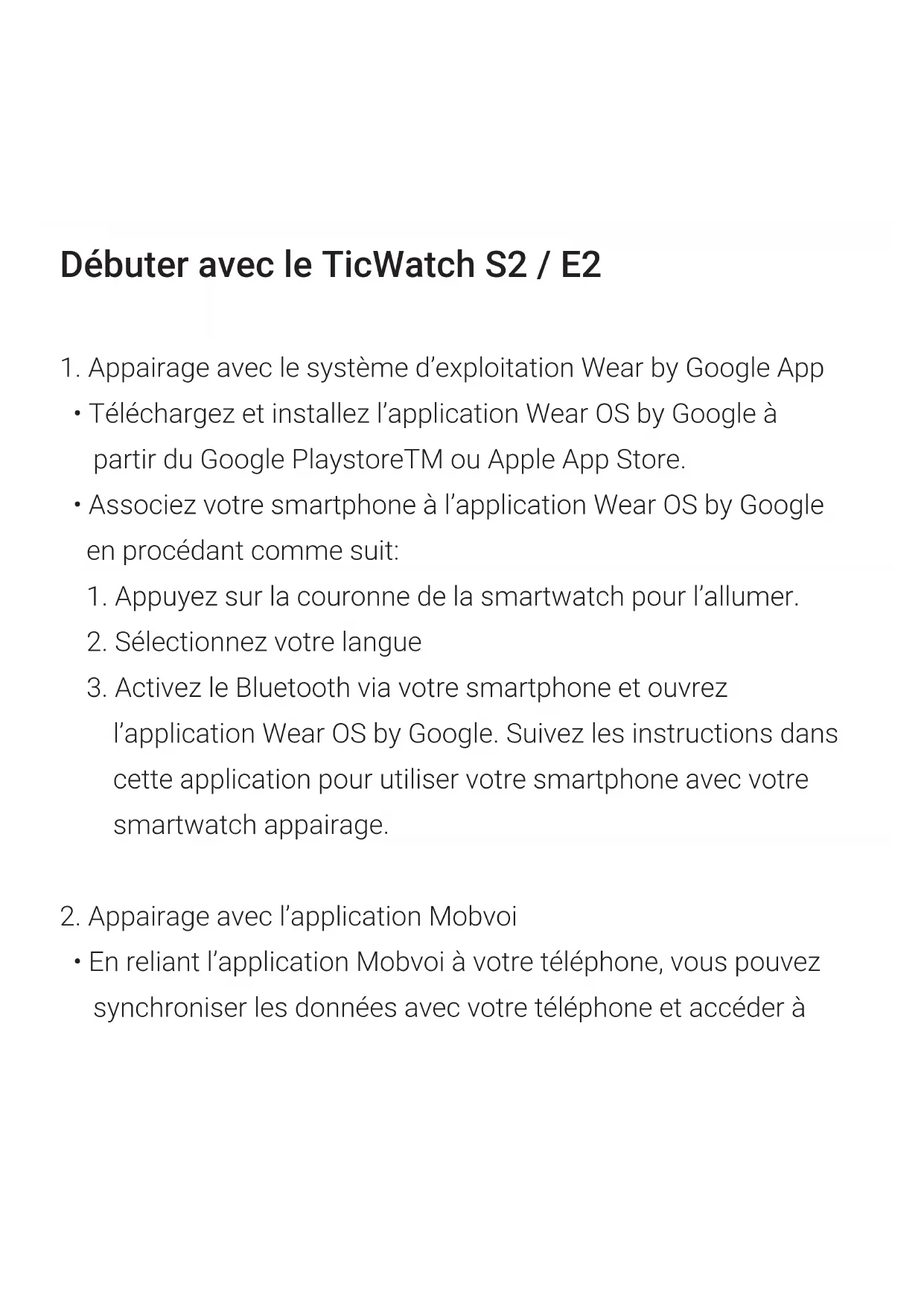 Appairage votre Mobvoi avec I'OS Wear by Google.