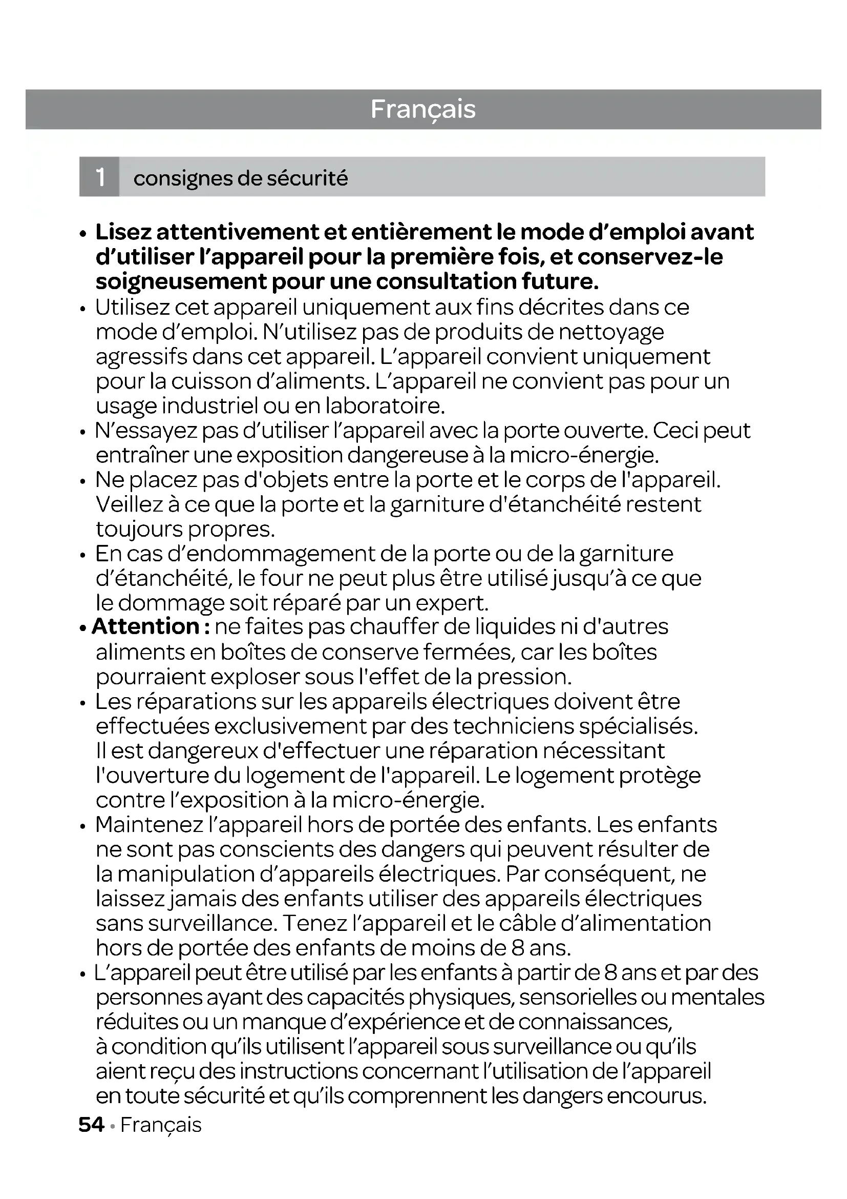- L'appareil peut être utilisé par les enfants à partir de 8 ans et par des personnes ayant des capacité nent les dangers encourus.