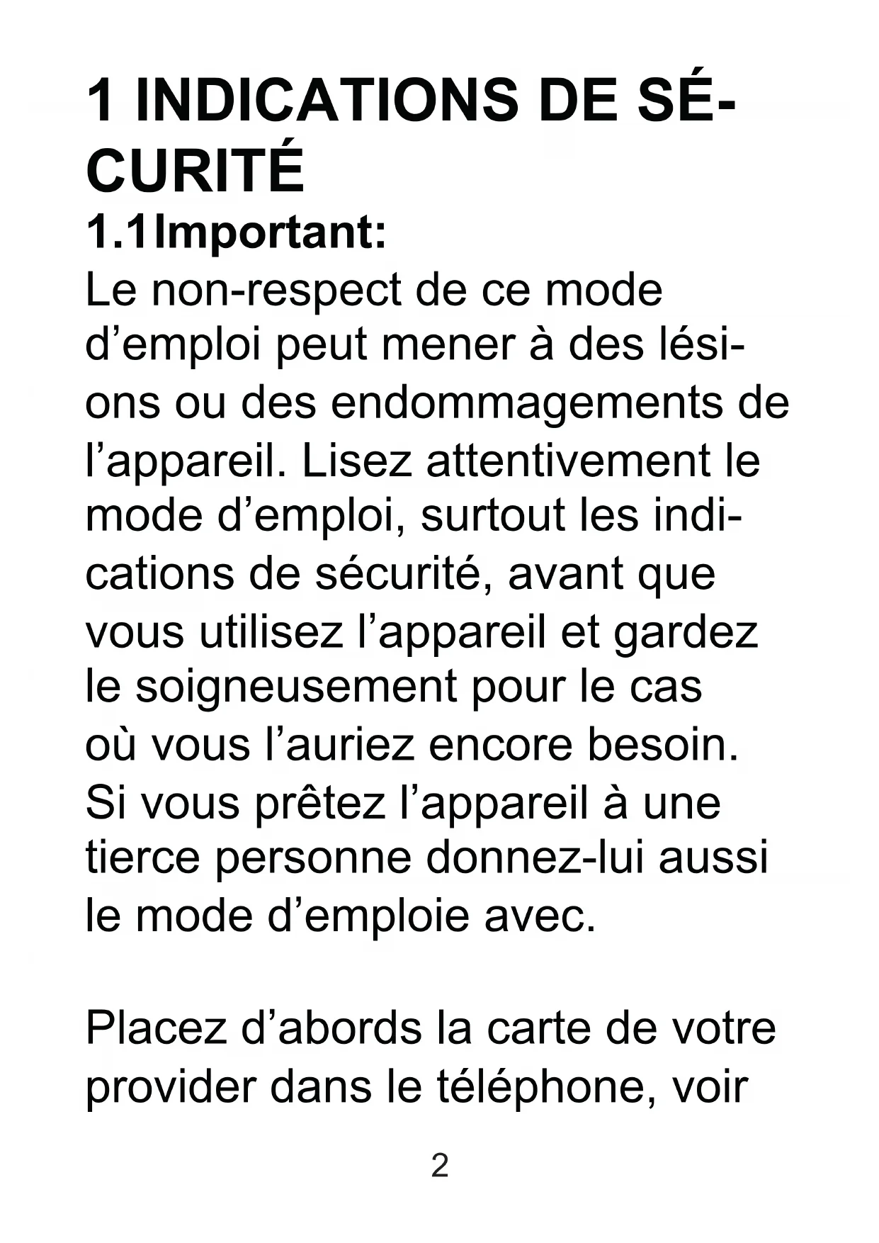 1 INDICATIONS DE SECURITÉ2