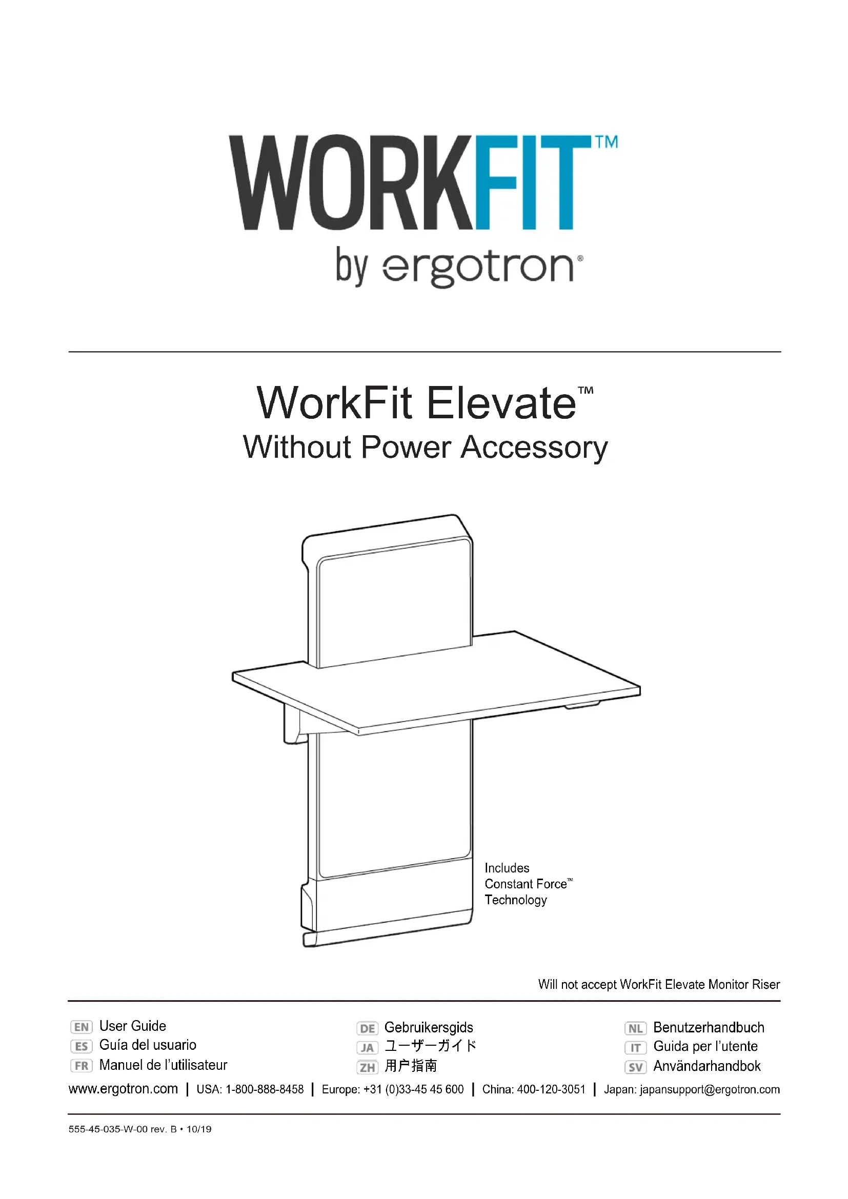 MODE D'EMPLOI WorkFit Elevate Ergotron