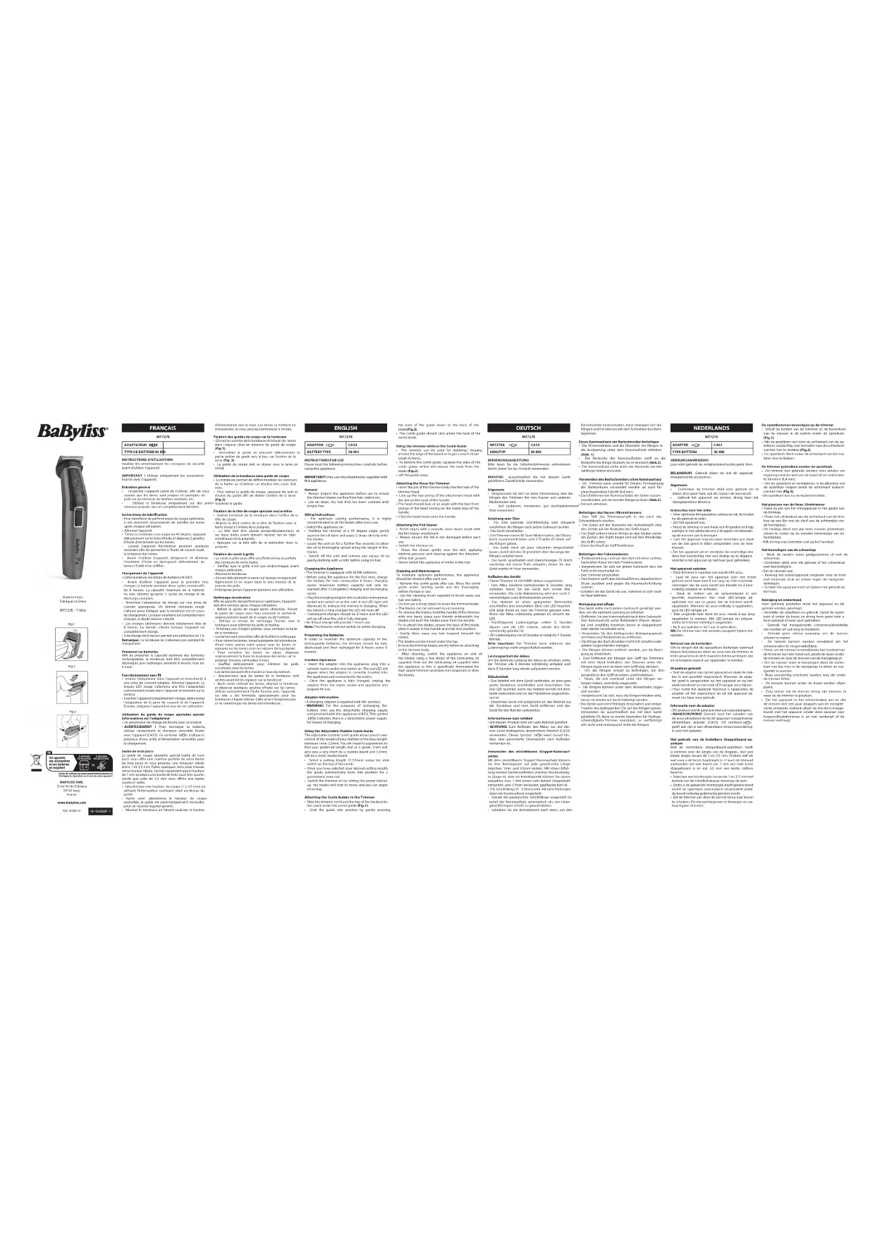Retrouvez gratuitement la notice de l'appareil MT727E BABYLISS au format PDF.
