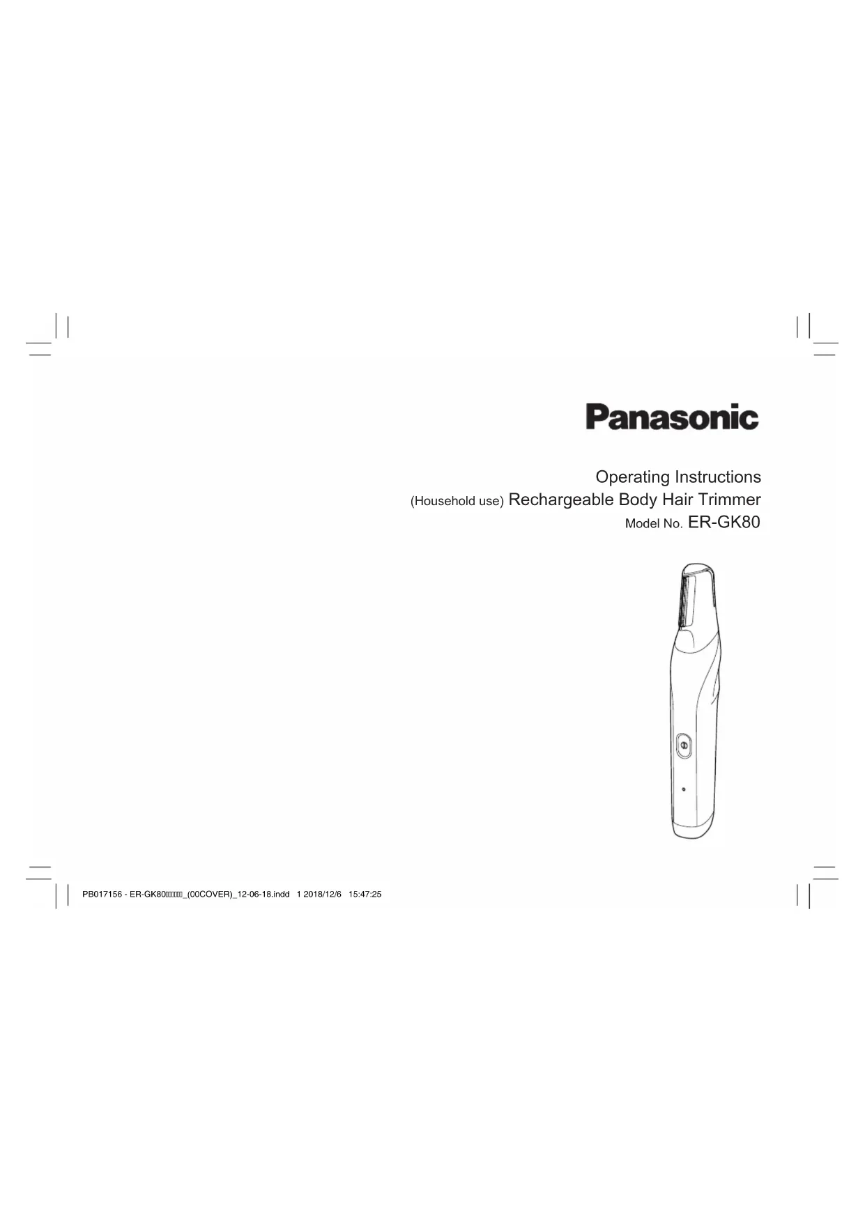 Retrouvez gratuitement la notice de l'appareil ERGK80 PANASONIC au format PDF.