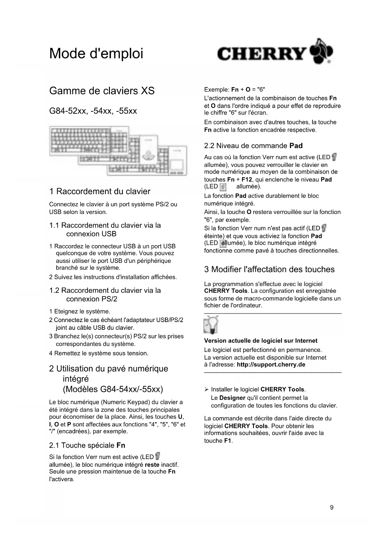 MODE D'EMPLOI XS Touchpad G845500 Cherry
