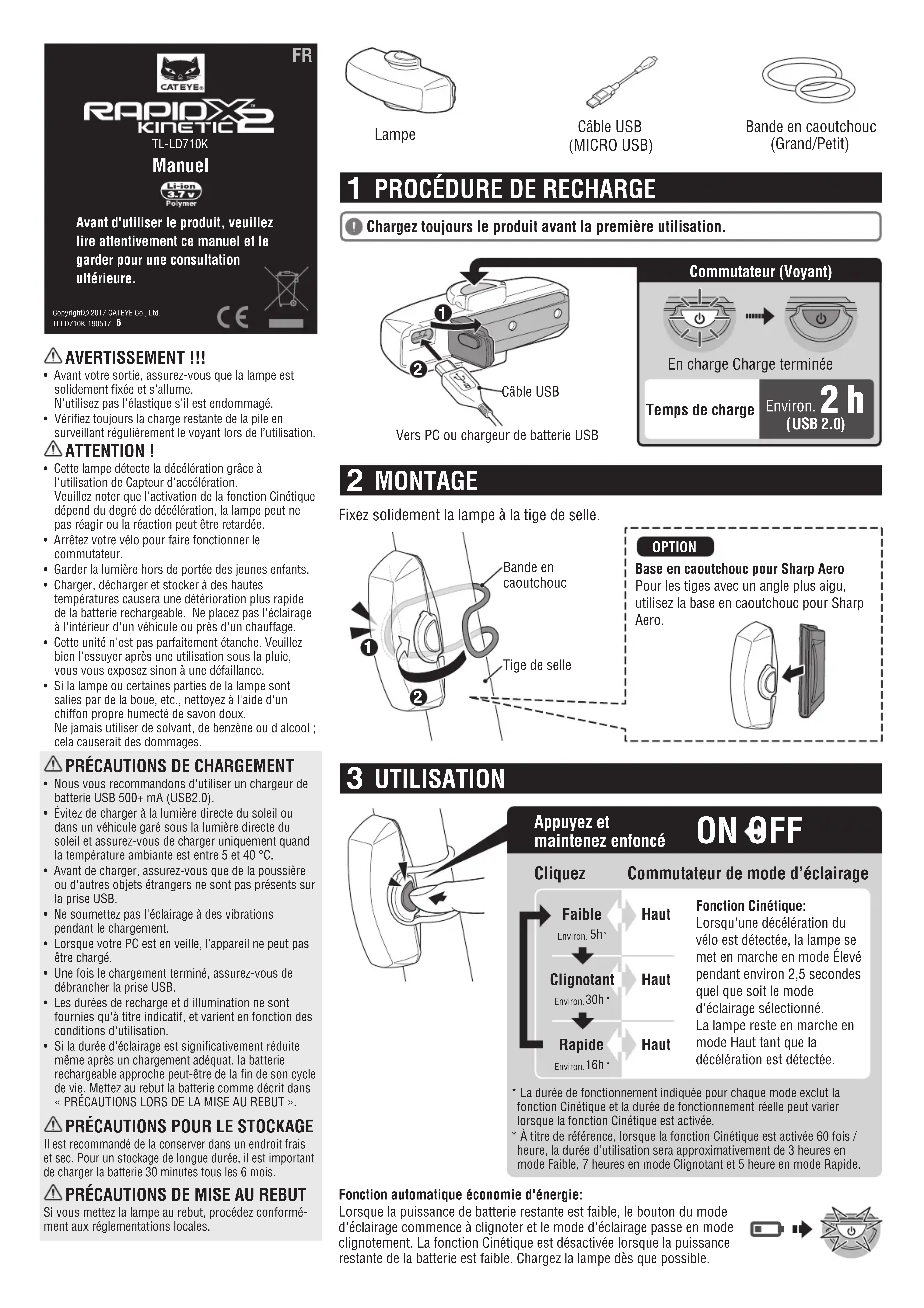 Retrouvez gratuitement la notice de l'appareil Rapid X2 Kinetic TLLD710K CAT EYE au format PDF.