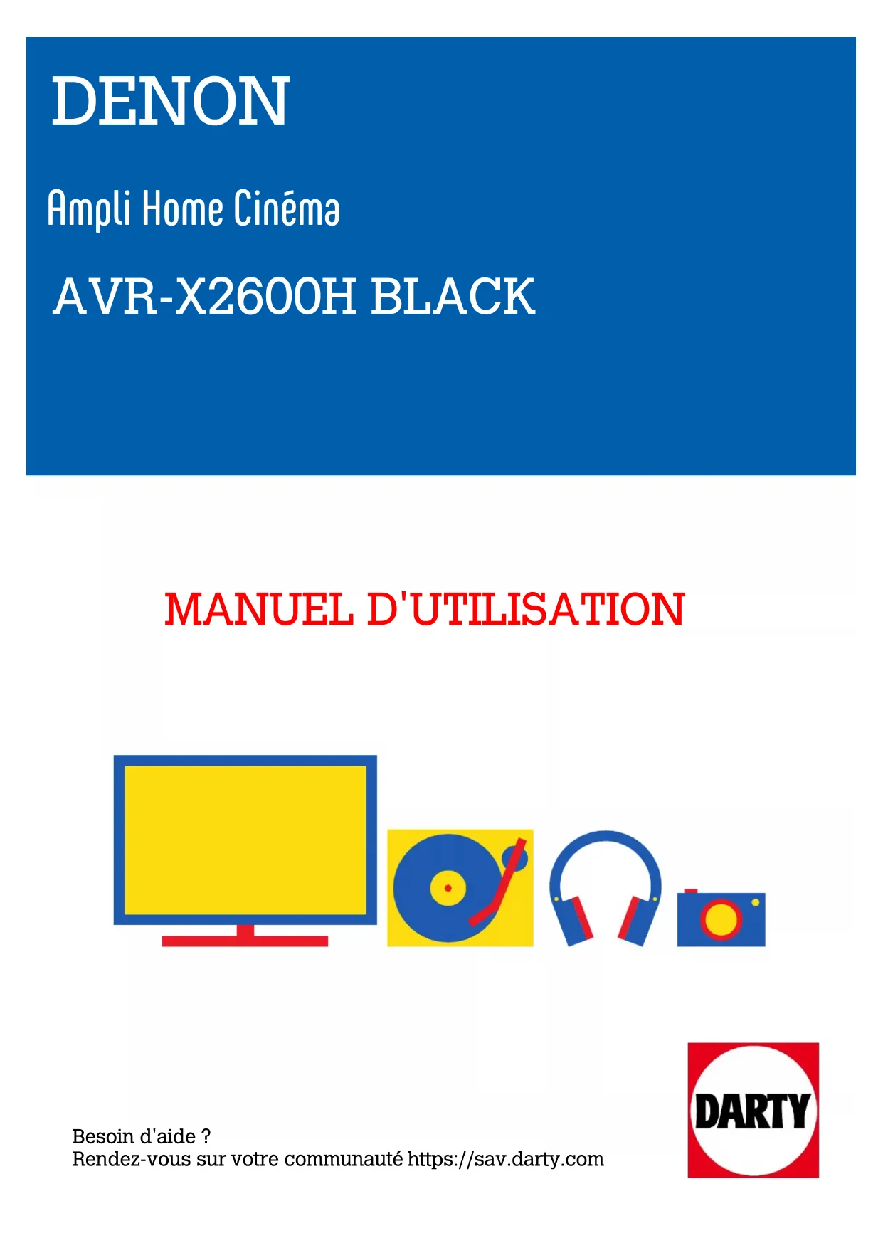DENON MANUEL D'UTILISATION Besoin d'aide ? Rendez-vous sur votre communauté https://sav.darty.com. AVR-X2600H