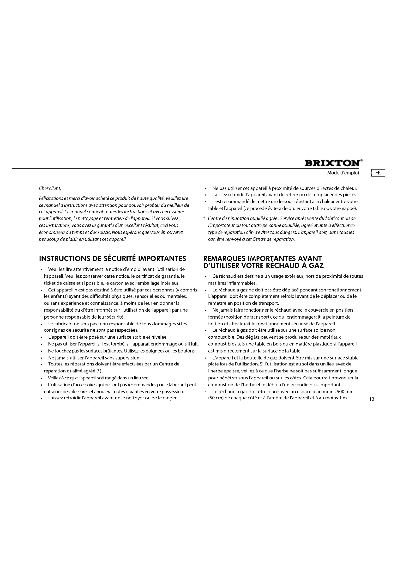 MODE D'EMPLOI Brixton KO6383 FireFriend